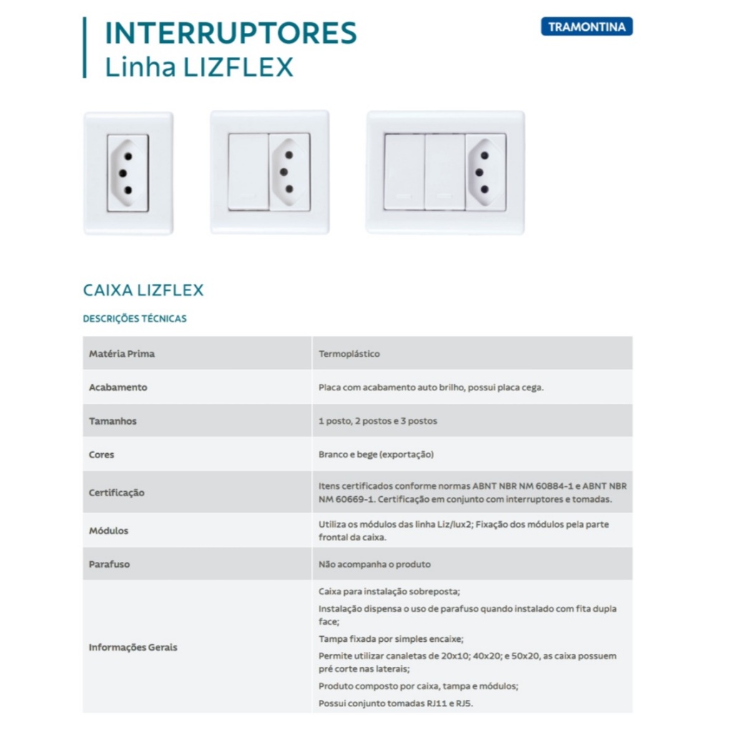 Conjunto Interruptor E Tomada Sobrepor Tramontina lizflex