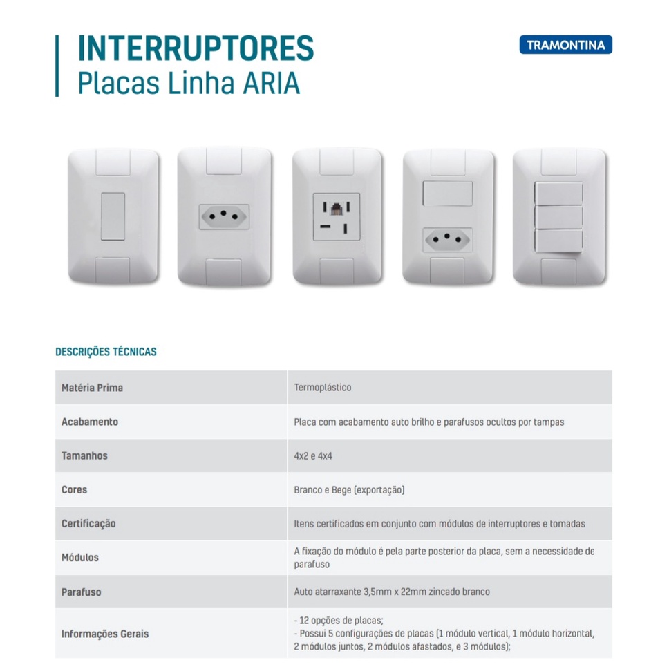 Conjunto Tomada e Interruptor Tramontina Aria