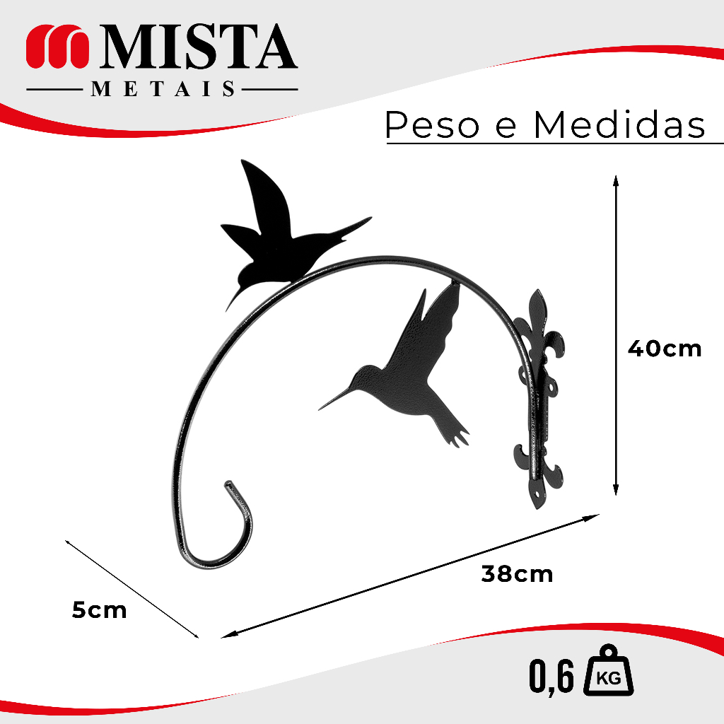 Suporte de Parede para Vaso de Flor e Jardim | Pendurador Decorativo de Flores BEIJA FLOR