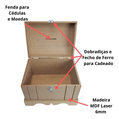 Caixa Bau Cofre Urna Com Fecho Cadeado - Bonito