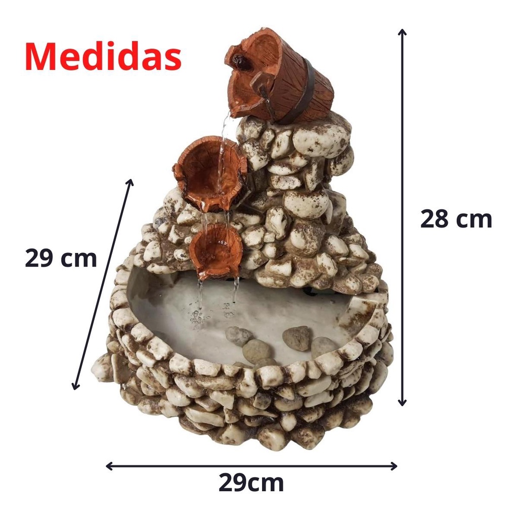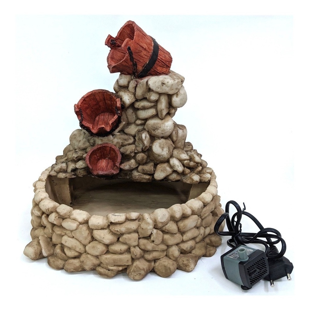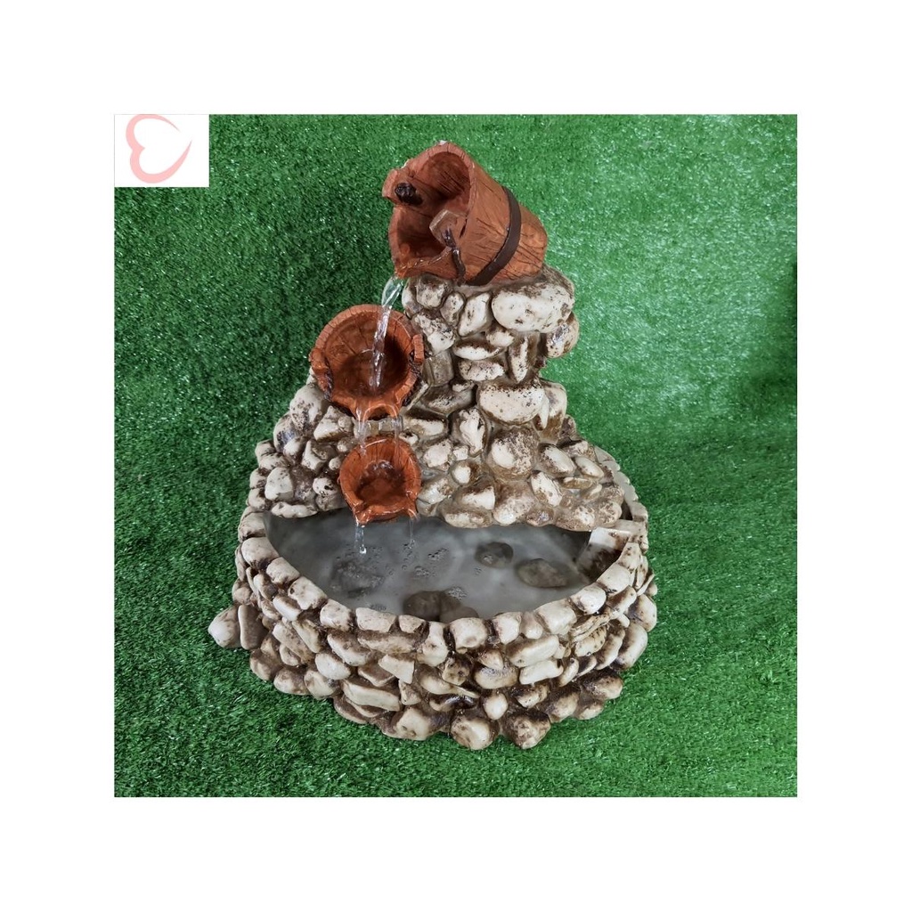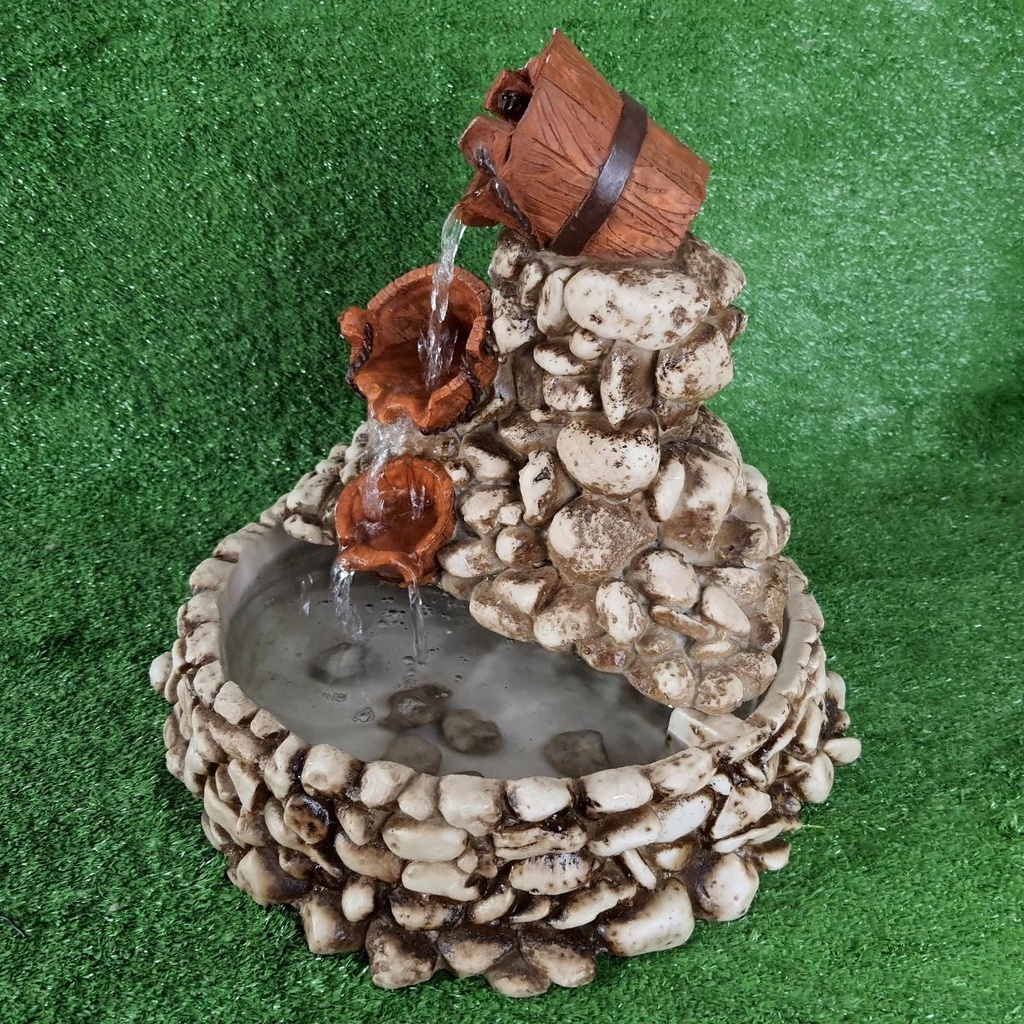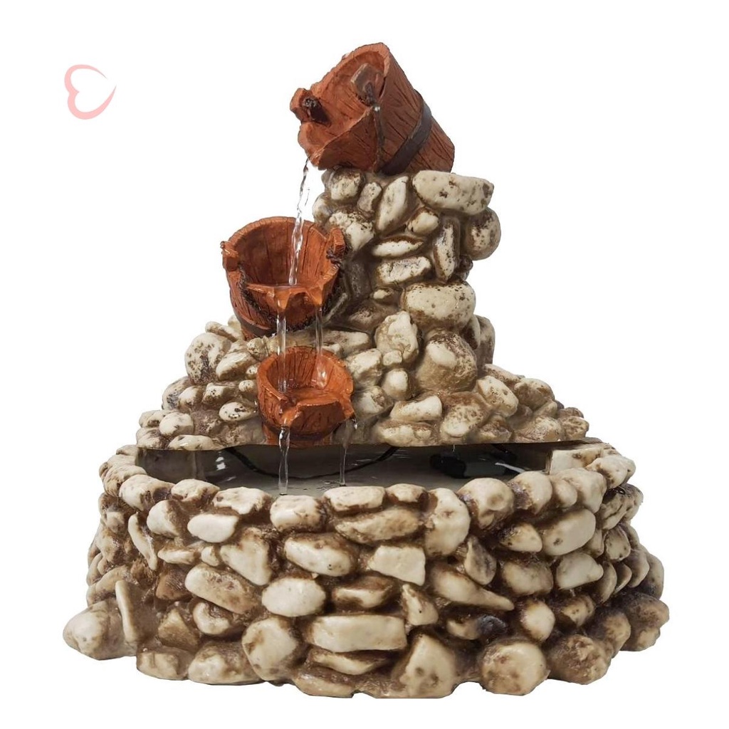 Fonte Água Cascata Baldes Feng Shui Betume Resina Decoração