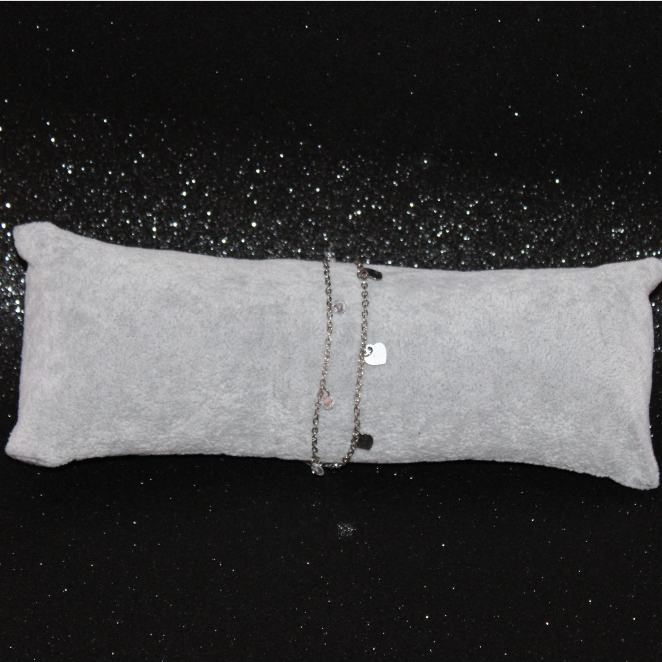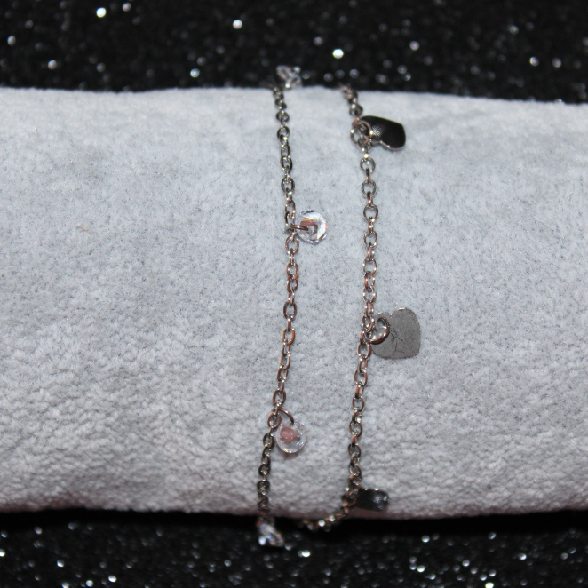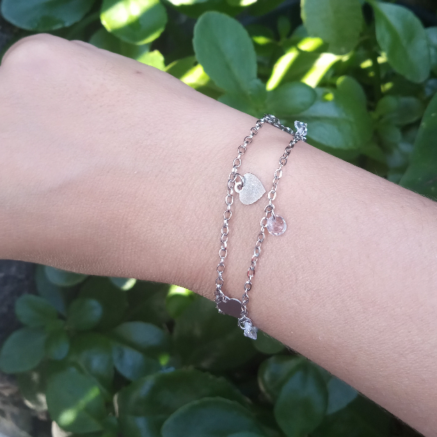 Pulseira Dupla Corações e Pedras - Semijoia Confeccionada em Aço Inoxidável