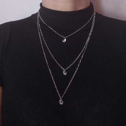 Colar Triplo Com Pedra - Semijoia Confeccionada em Aço Inoxidável