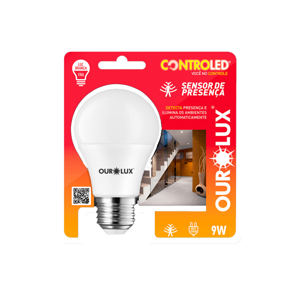 Lâmpada LED 9W Sensor Presença 6500K Branco Frio Ourolux Bivolt