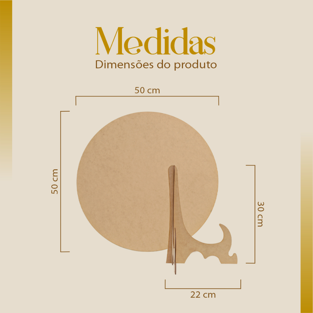 Painel De Festa Redondo 50cm Com Suporte Em MDF 3mm Decoração Mesa Pronta Entrega