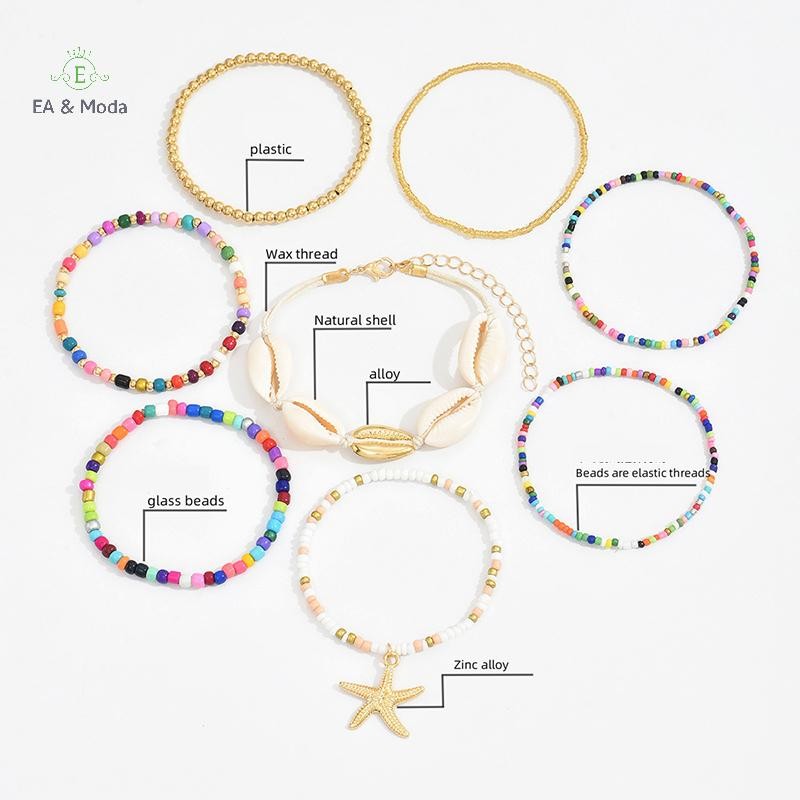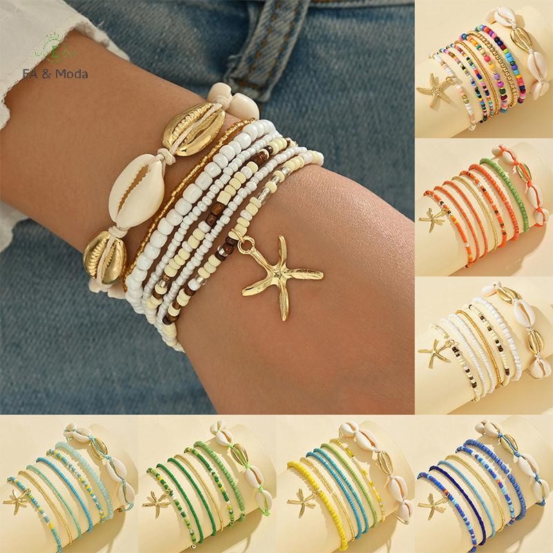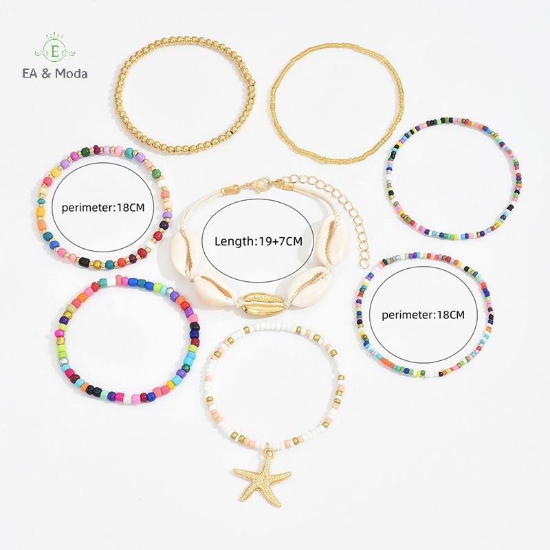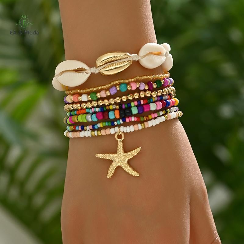 EA & Moda 7 Peças Pulseira De Tecido À Mão Estilo Boêmio Estrela Do Mar Para Mulheres Meninas Com Contas Verão Praia Ace