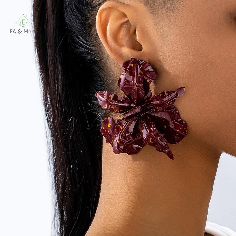 EA & Moda Plissado Irregular Flor Brincos Para Mulheres Retro Elegante Temperamento Acessórios De Orelha Festa De Casame