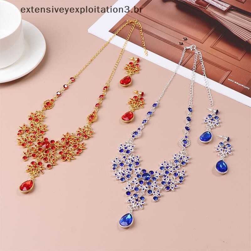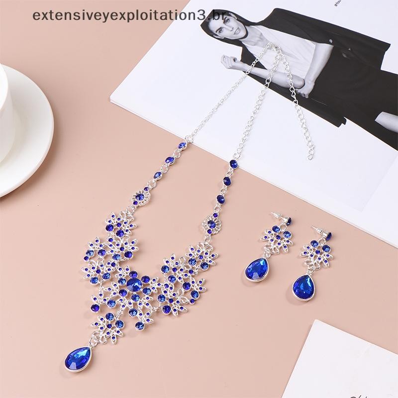 EEBR Festa De Casamento Colar Brinco Conjunto Flor Gota De Água Nupcial Acessórios De Jóias .