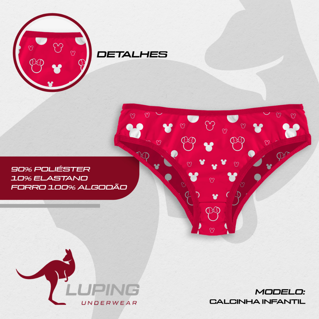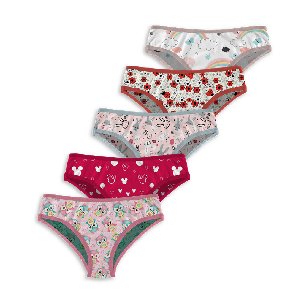 Kit 10, 5 Calcinhas Feminina Infantil Tecido Microfibra Com Forro de 100% Algodão Estampada Confortável