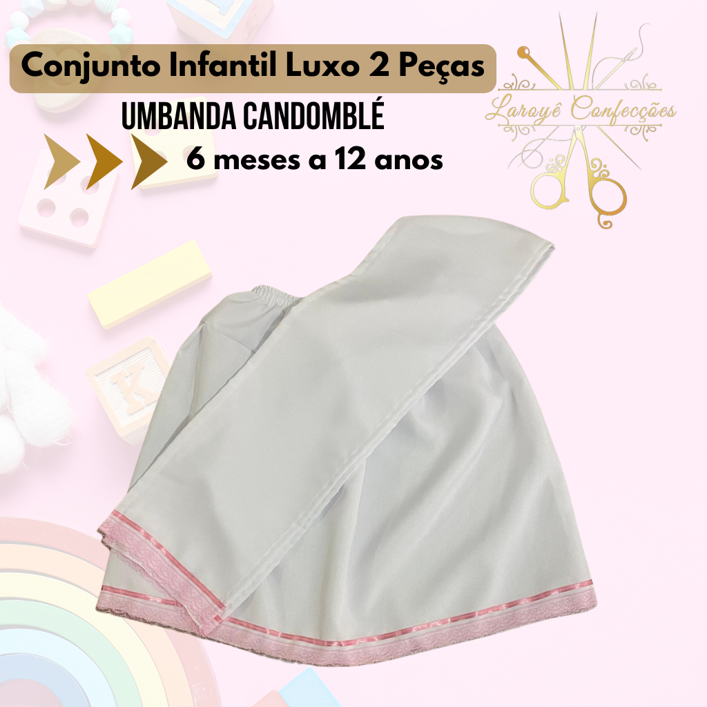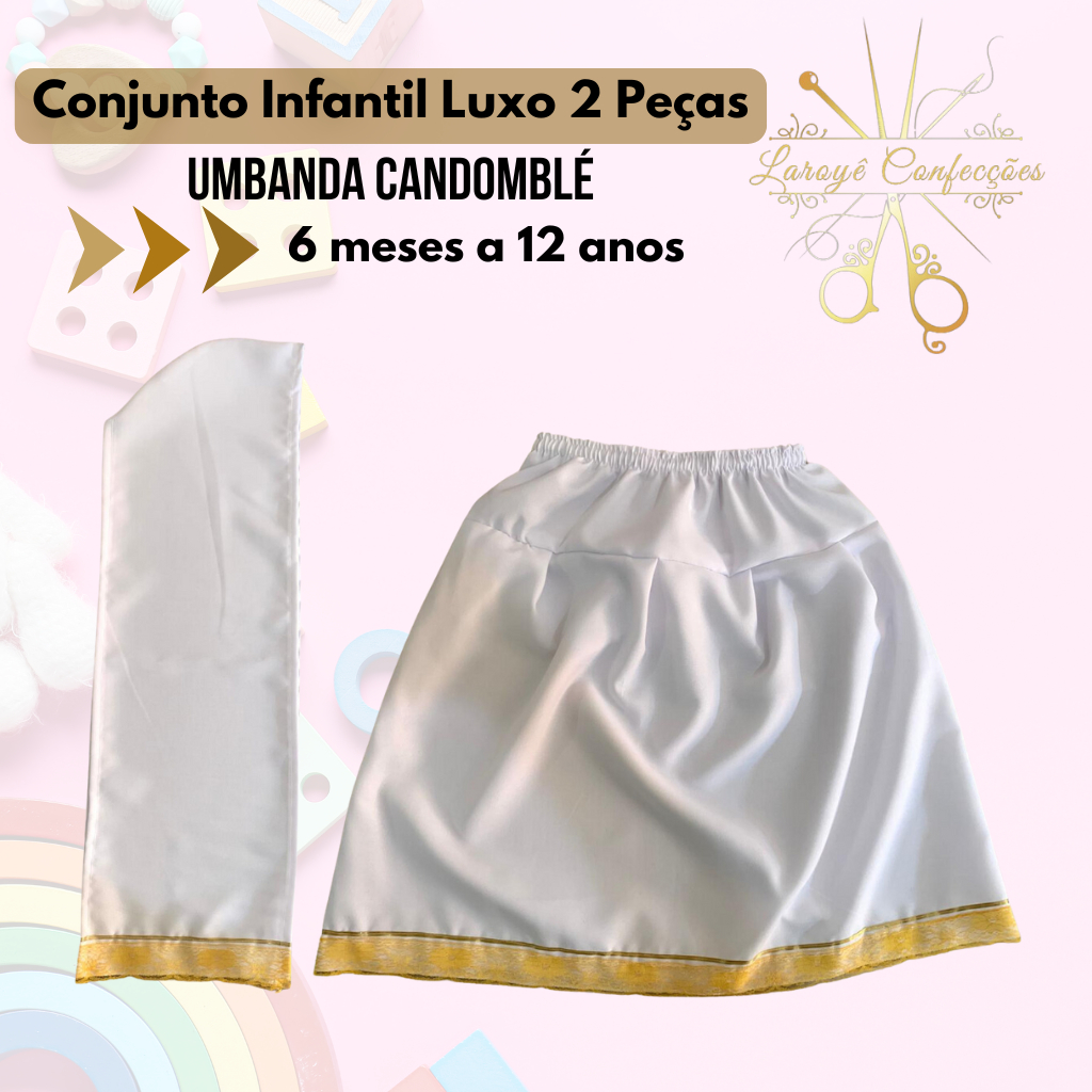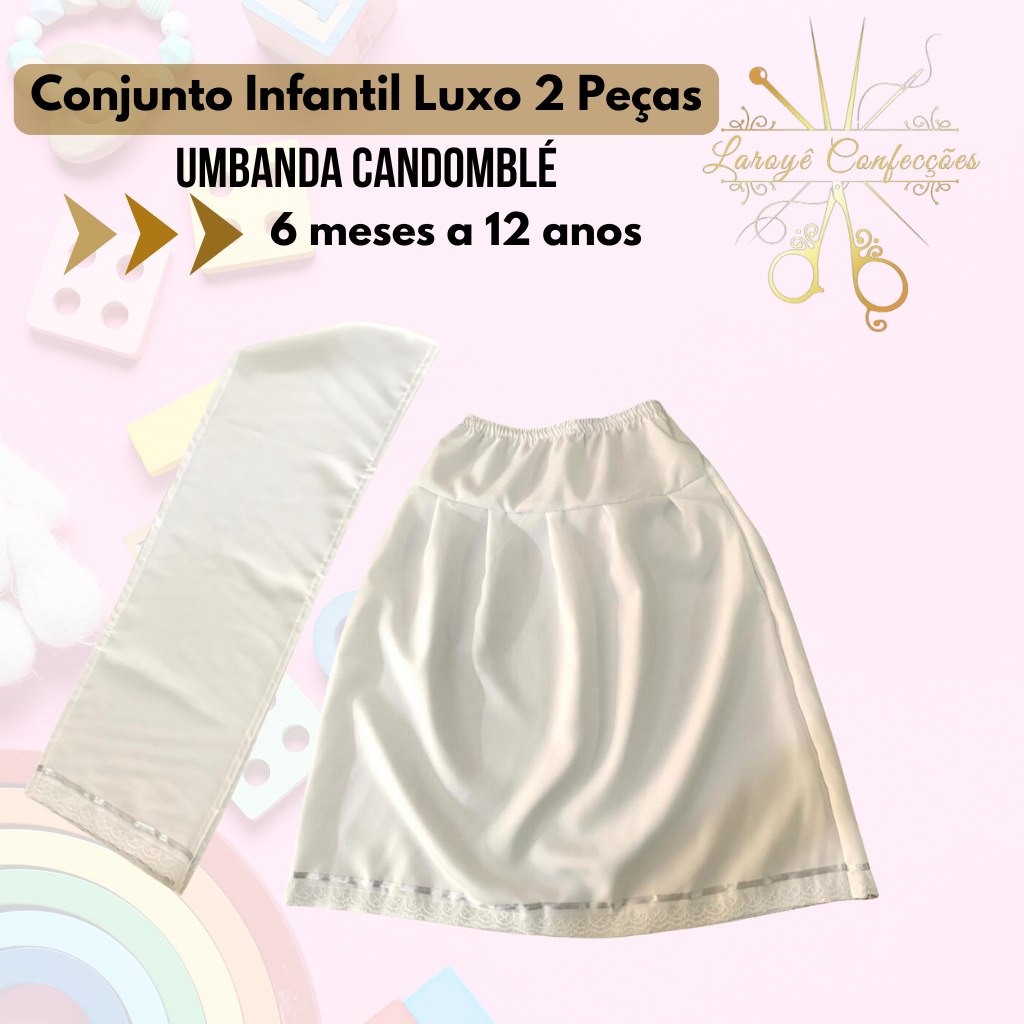 Conjunto Baby Menina 2 Peças: Saia e Pano de Cabeça Luxo Umbanda Candomblé 0 meses a 5 anos