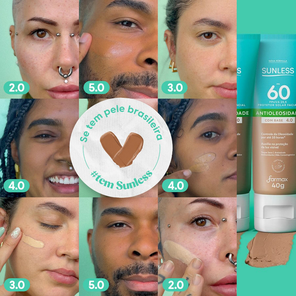 Protetor Solar Facial Antioleosidade FPS 60 com Base Efeito Matte Sunless 40g Envio Imediato