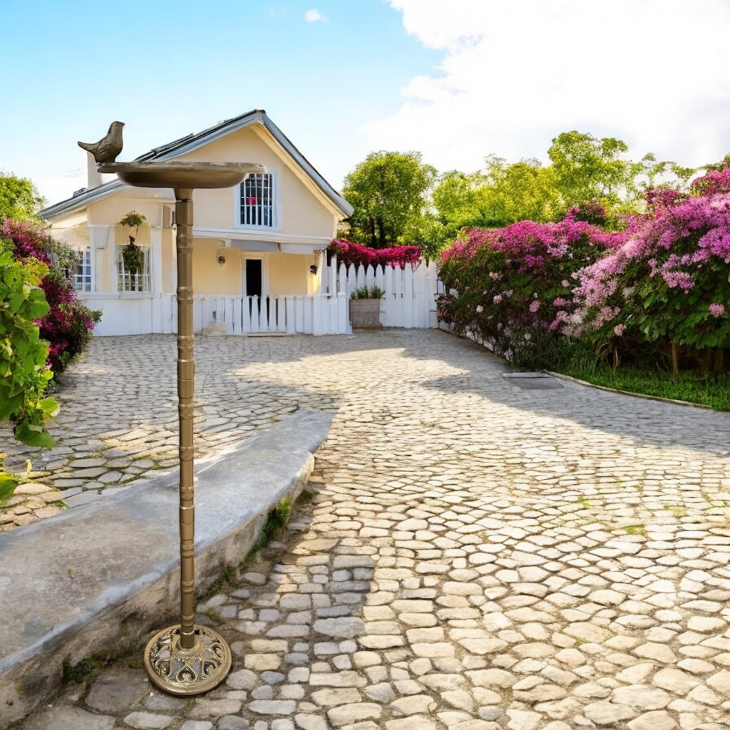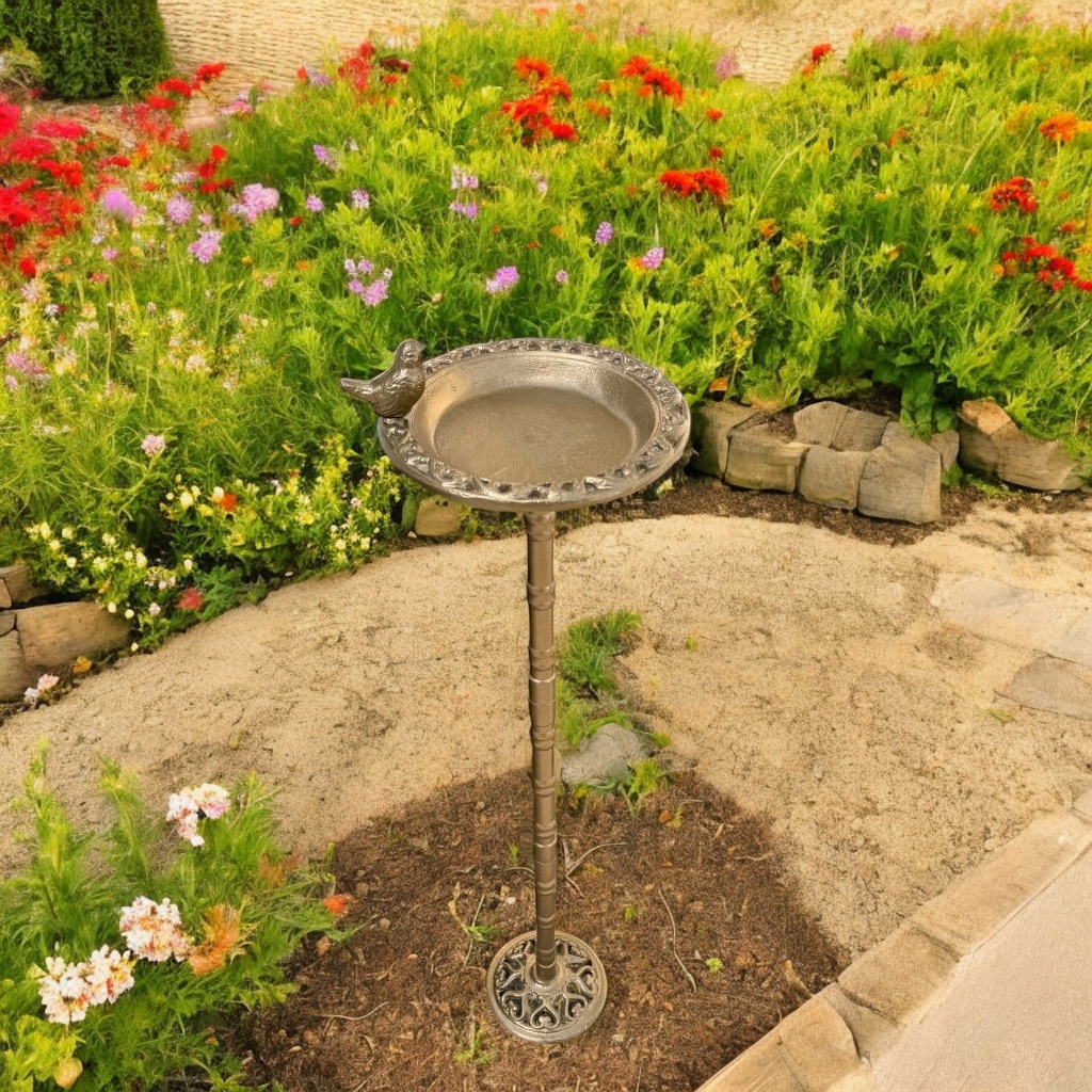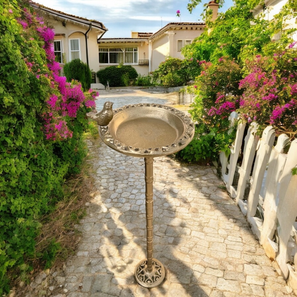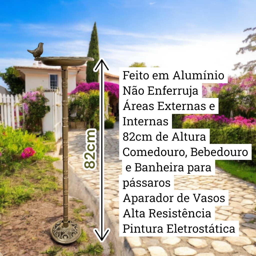 Bebedouro Comedouro Banheira Metal Pássaros Decorativo 82cm Jardim Pedestal Suporte de Vaso Itália