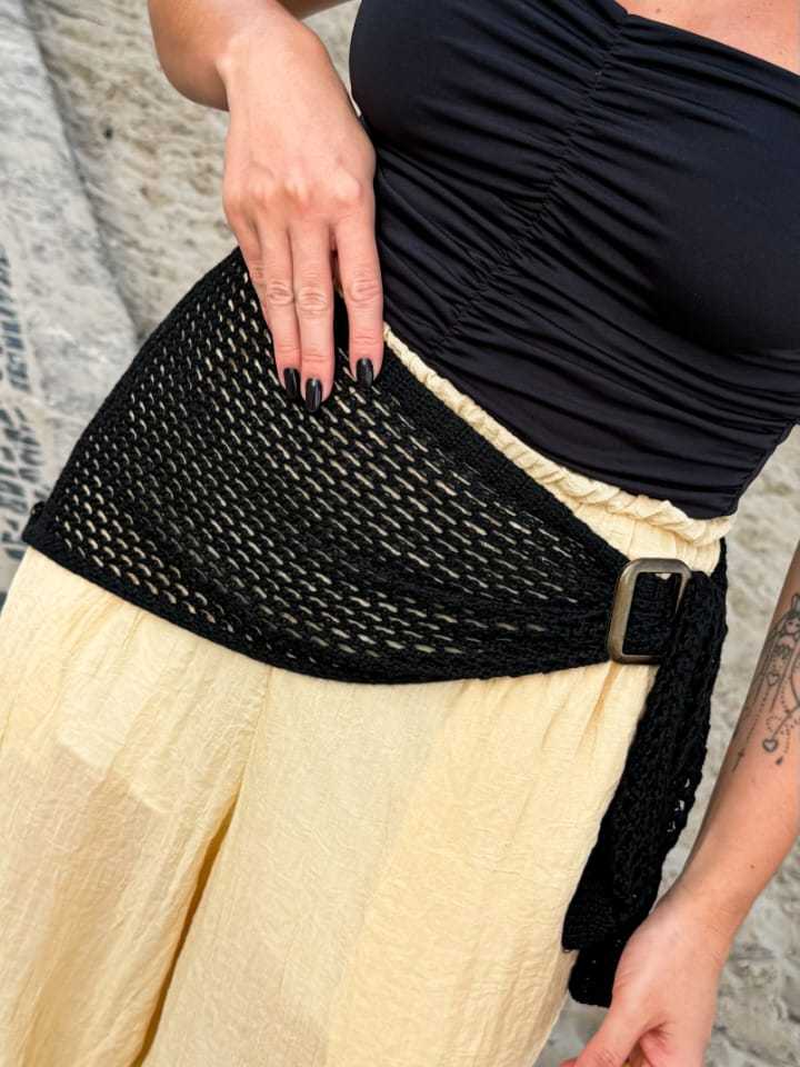 Lenço Bandana Cintura Tricot Vazado Estilo Crochê – Acessório Feminino Moda Verão Praia Look Retrô