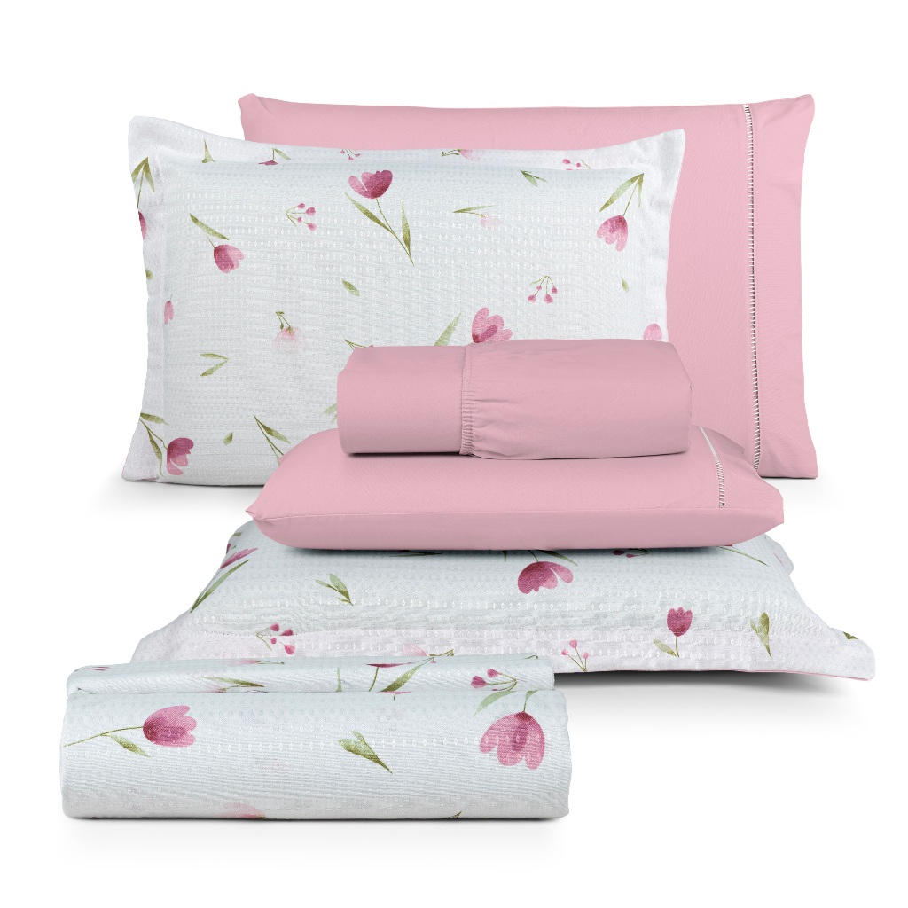 Kit 4 Peças Solteiro Cobre leito + Jogo de lençol 100% Algodão 180 fios Tecido Piquet