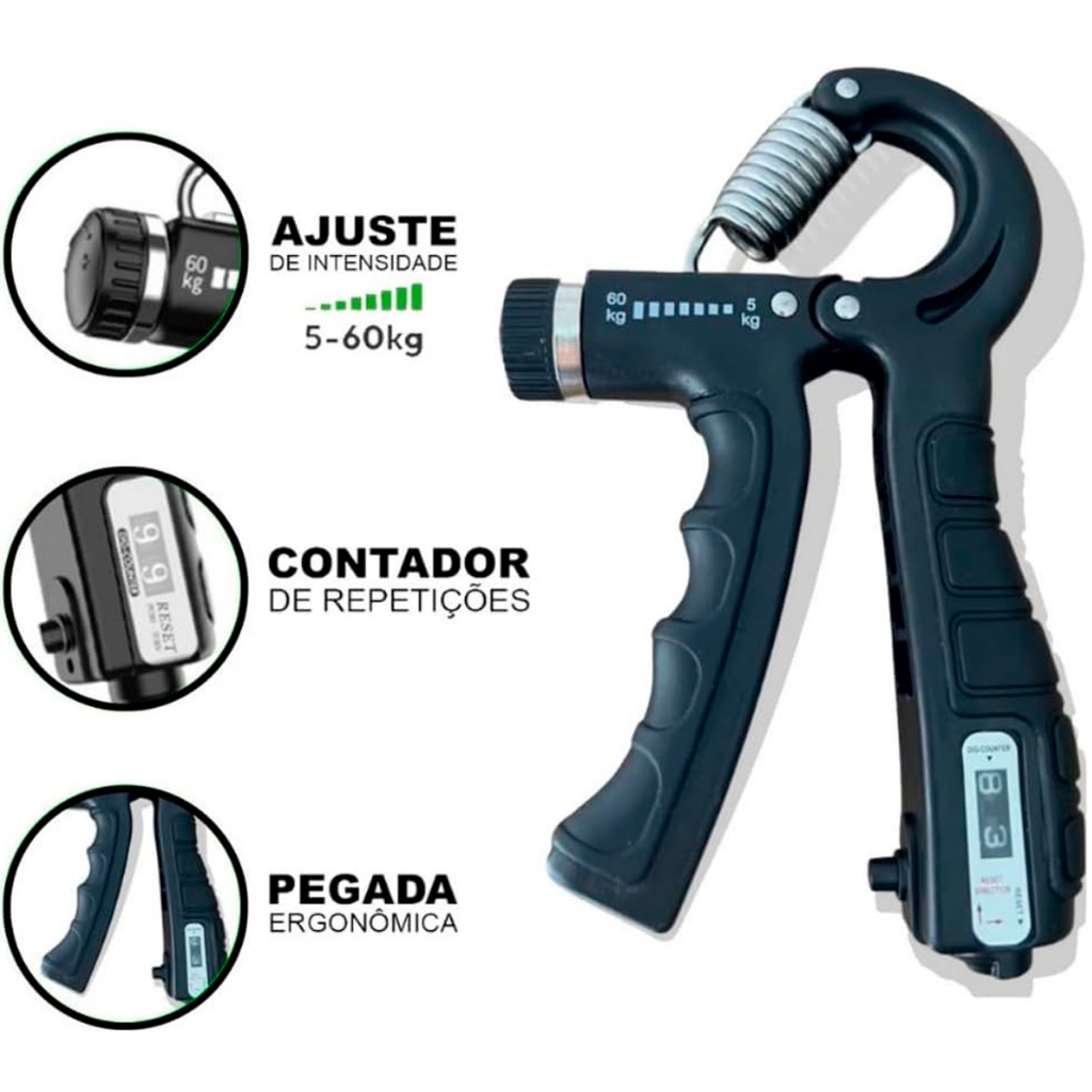 Hand Grip Flexor De Punho Exercício Para Mãos Ajustável Mola 60 Kg Treinar Antebraço Com Contador 0 A 99