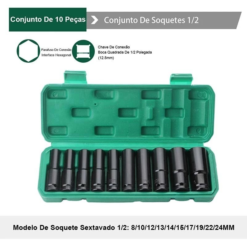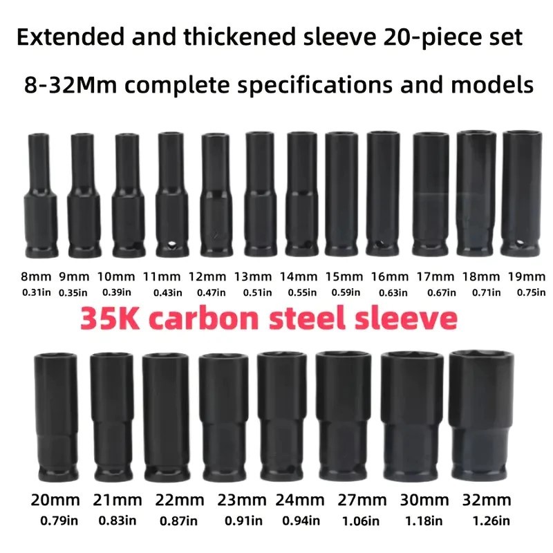 20 Peças Jogo de Soquetes de Impacto Longo 1/2 - 8 A 32mm