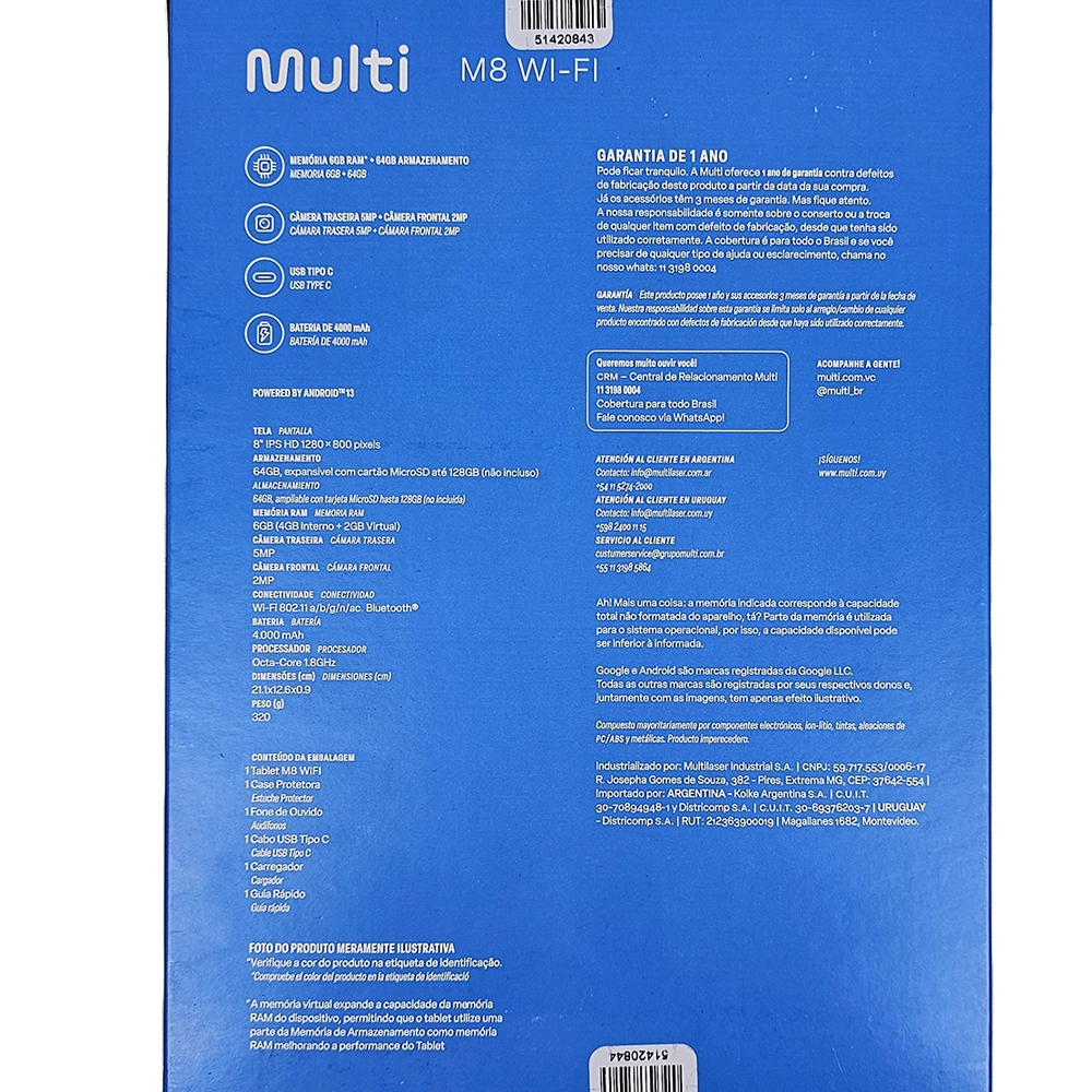 Tablet M8 Multi 6GB RAM + 64GB Camera 2MP/5MP Wi-Fi Bluetooth USB-C 8” Cinza - NB426