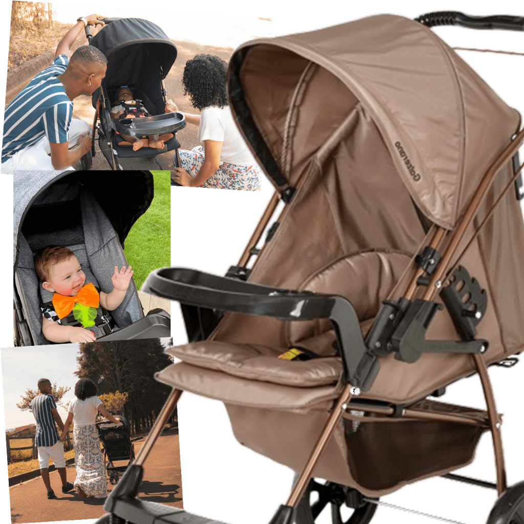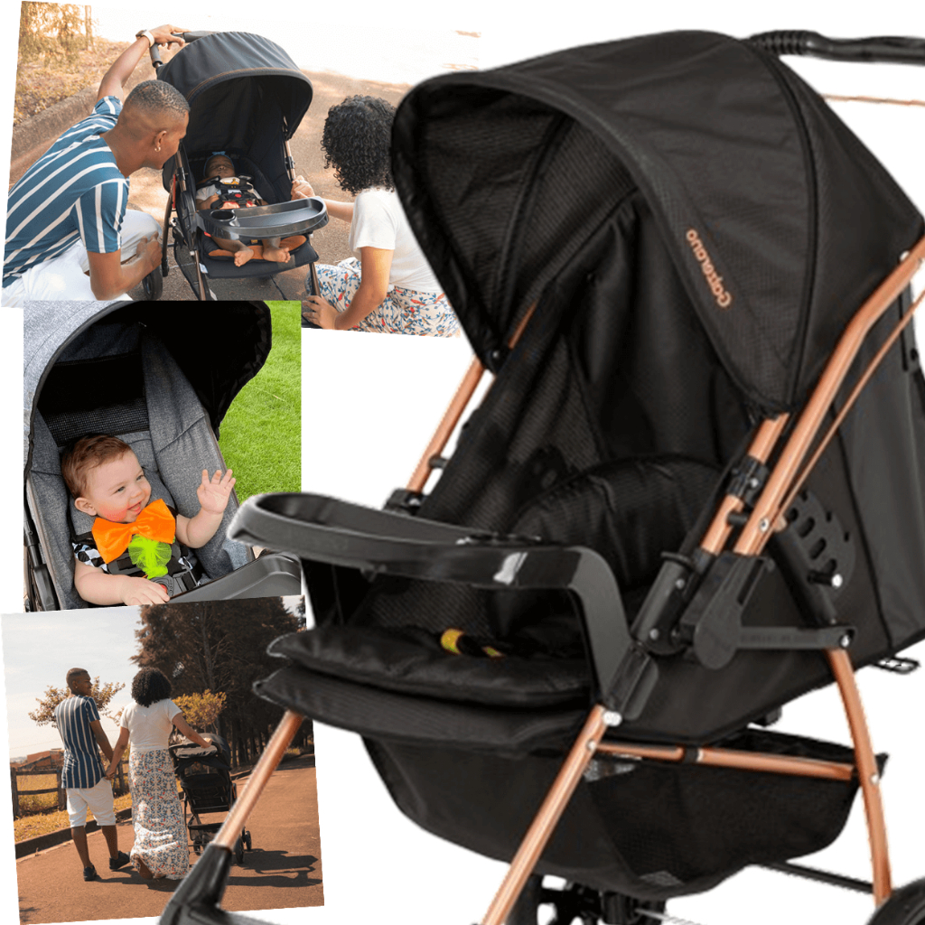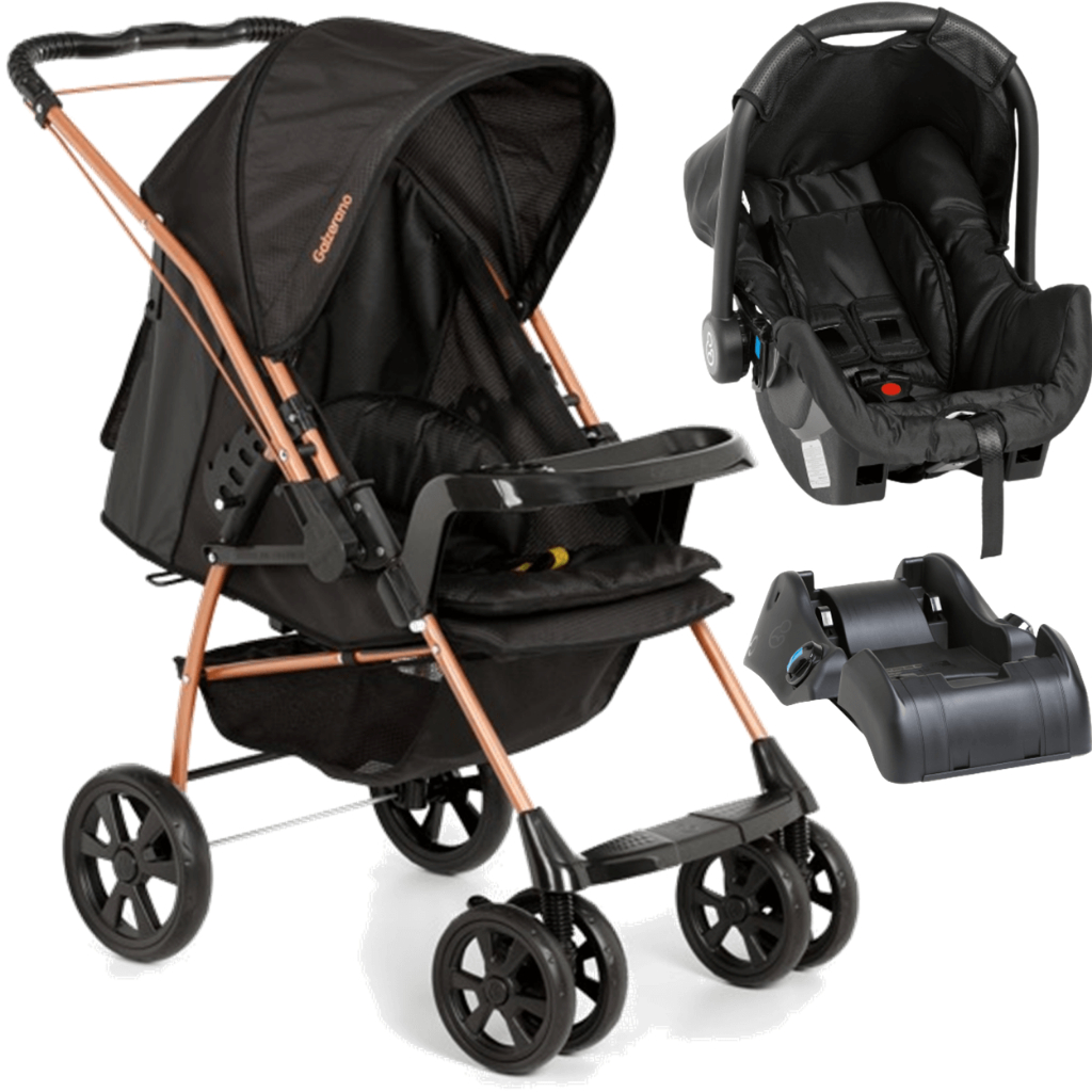 Carrinho com Bebe Conforto Base Galzerano Milano Preto Cobre