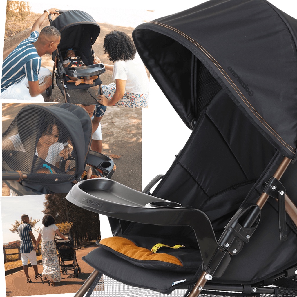Carrinho com Bebe Conforto Base Galzerano San Remo Preto Cobre