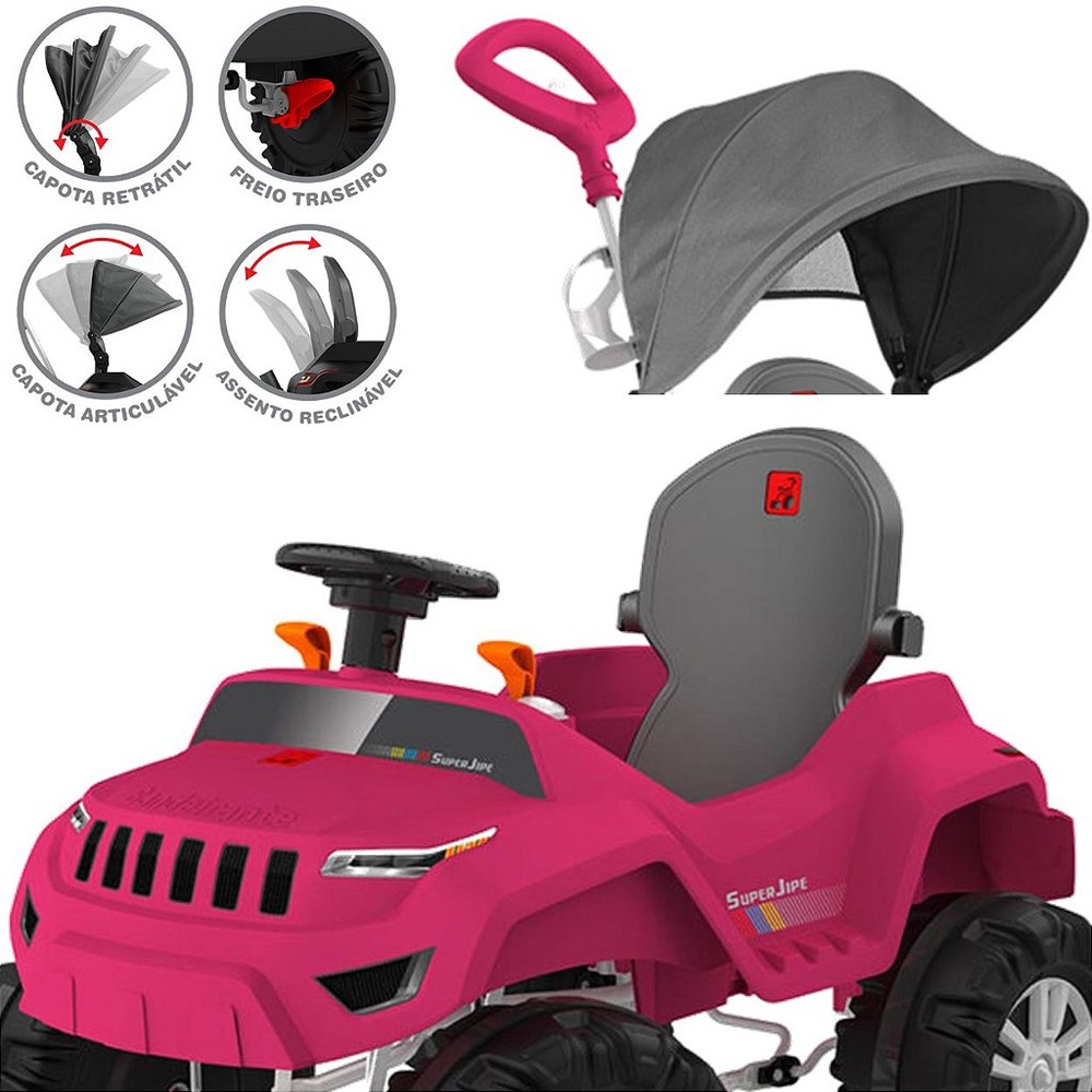Carrinho Passeio Pedal Bandeirante Superjipe com Capota Pink