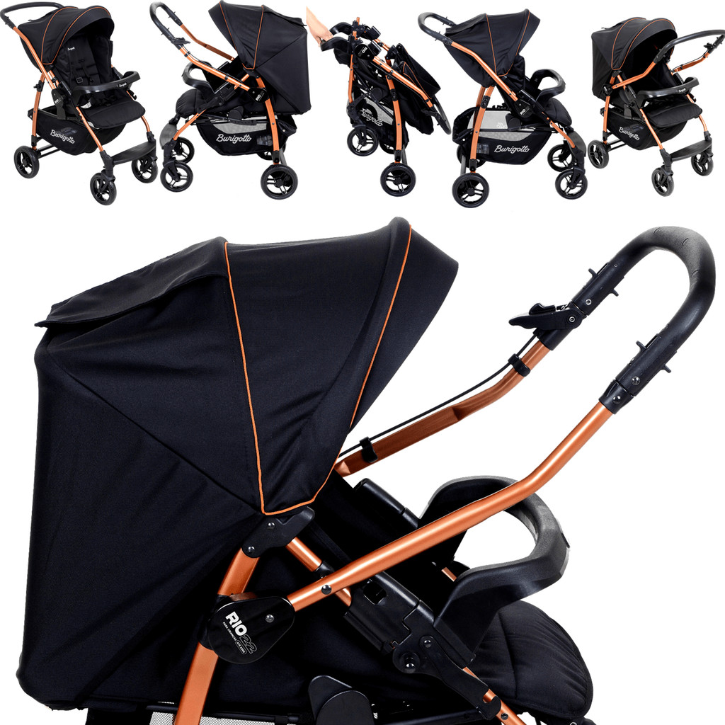 Carrinho de Bebe Burigotto Reversivel Rio K 22 Preto Cobre