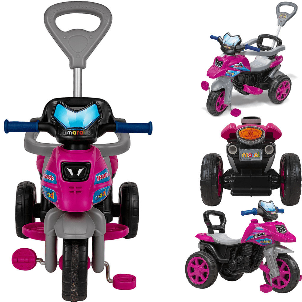 Moto Trail Infantil 2 em 1 Maral com Pedal e Empurrador Rosa