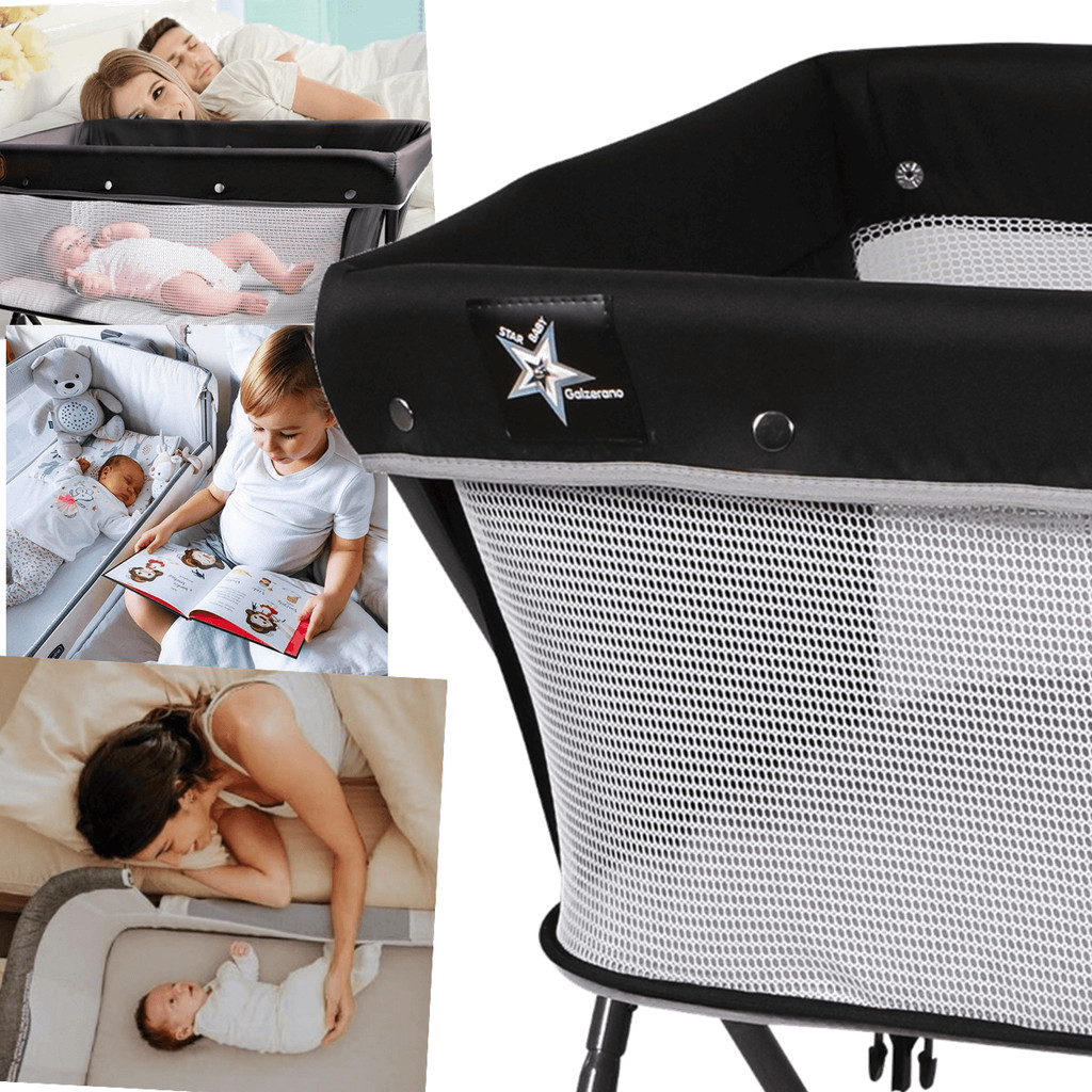 Berço para Bebes Co-Leito Galzerano Bari Lado a Lado Preto Cinza