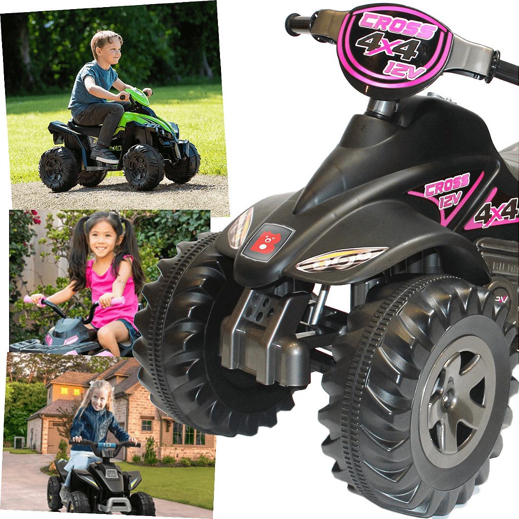 Quadriciclo Eletrico Biemme Quatry Cross 12V Preto Rosa Girl
