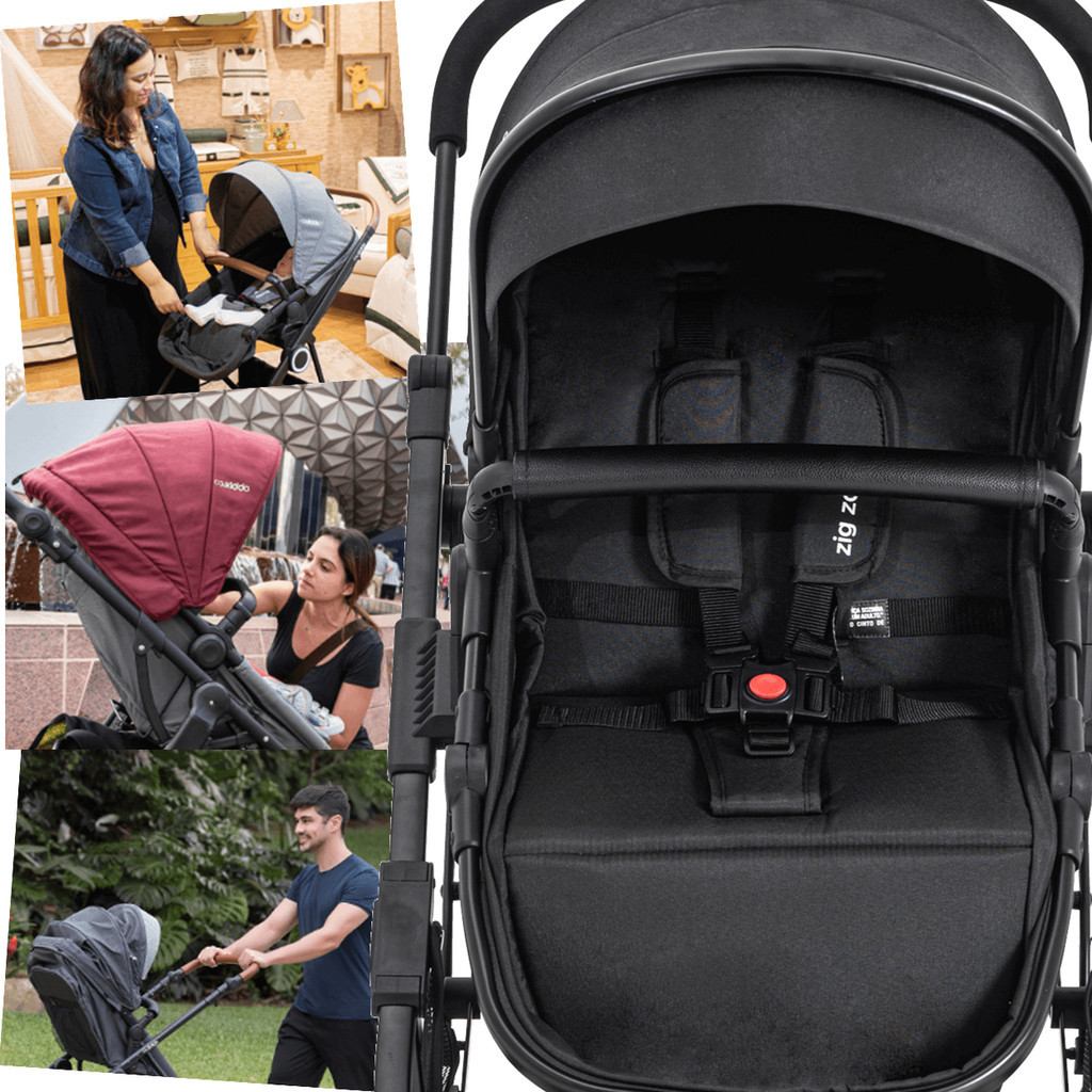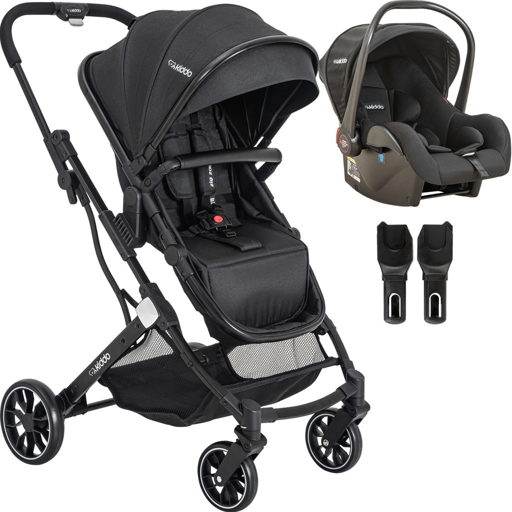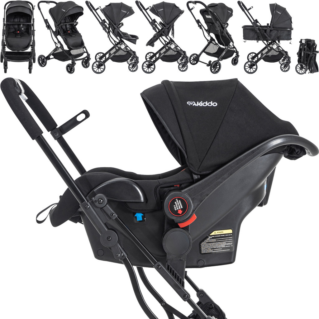 Carrinho de Bebe Moises com Bebe Conforto Kiddo Zig Zag Preto