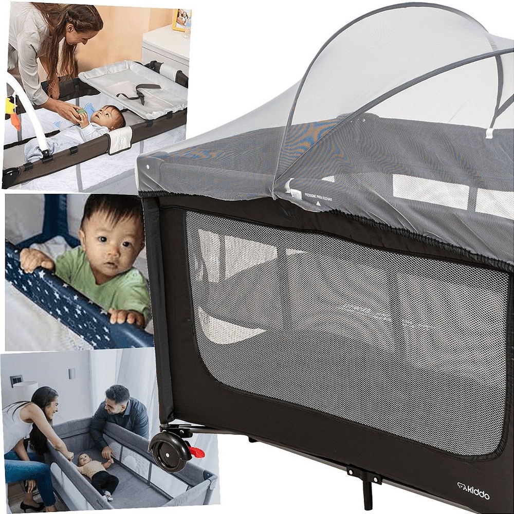 Berço Cercado Desmontavel Portatil Kiddo Dreams Preto 20kg
