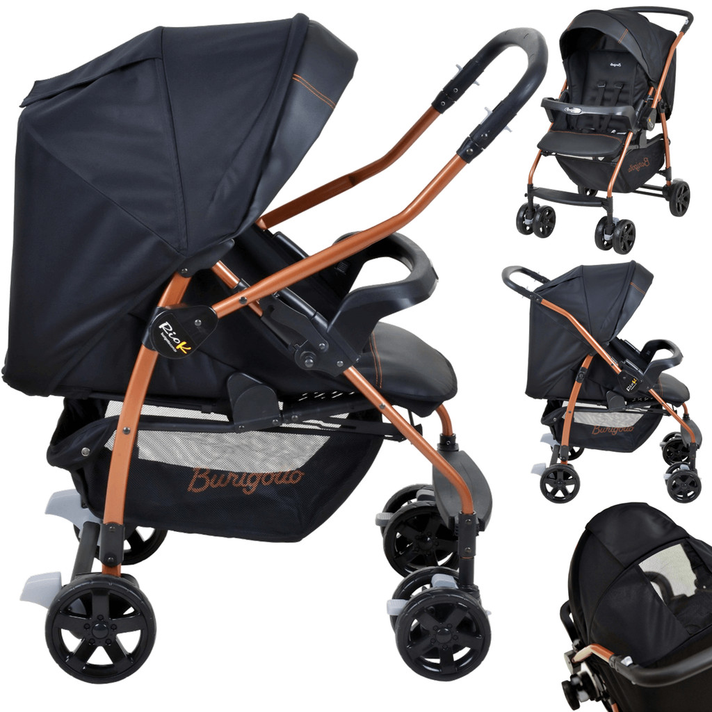 Carrinho com Bebe Conforto Base Ninho Burigotto Rio K Cobre