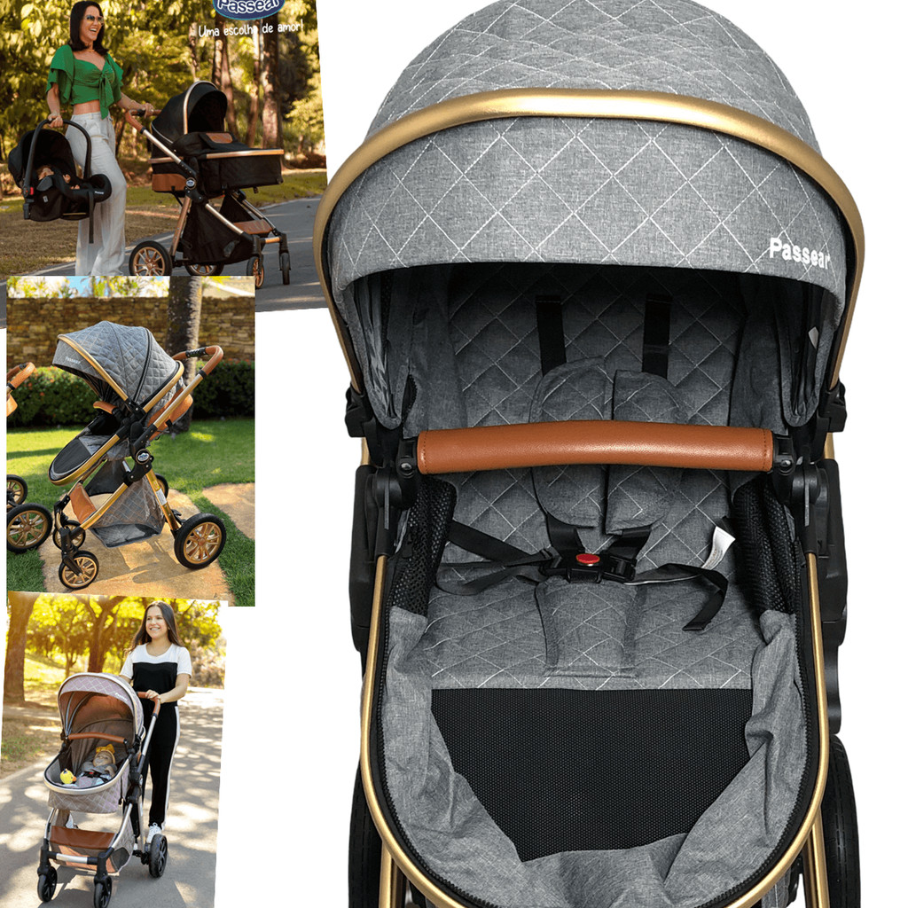 Carrinho de Bebe Moises Passear Baby Ares Plus 3 em 1 Cinza