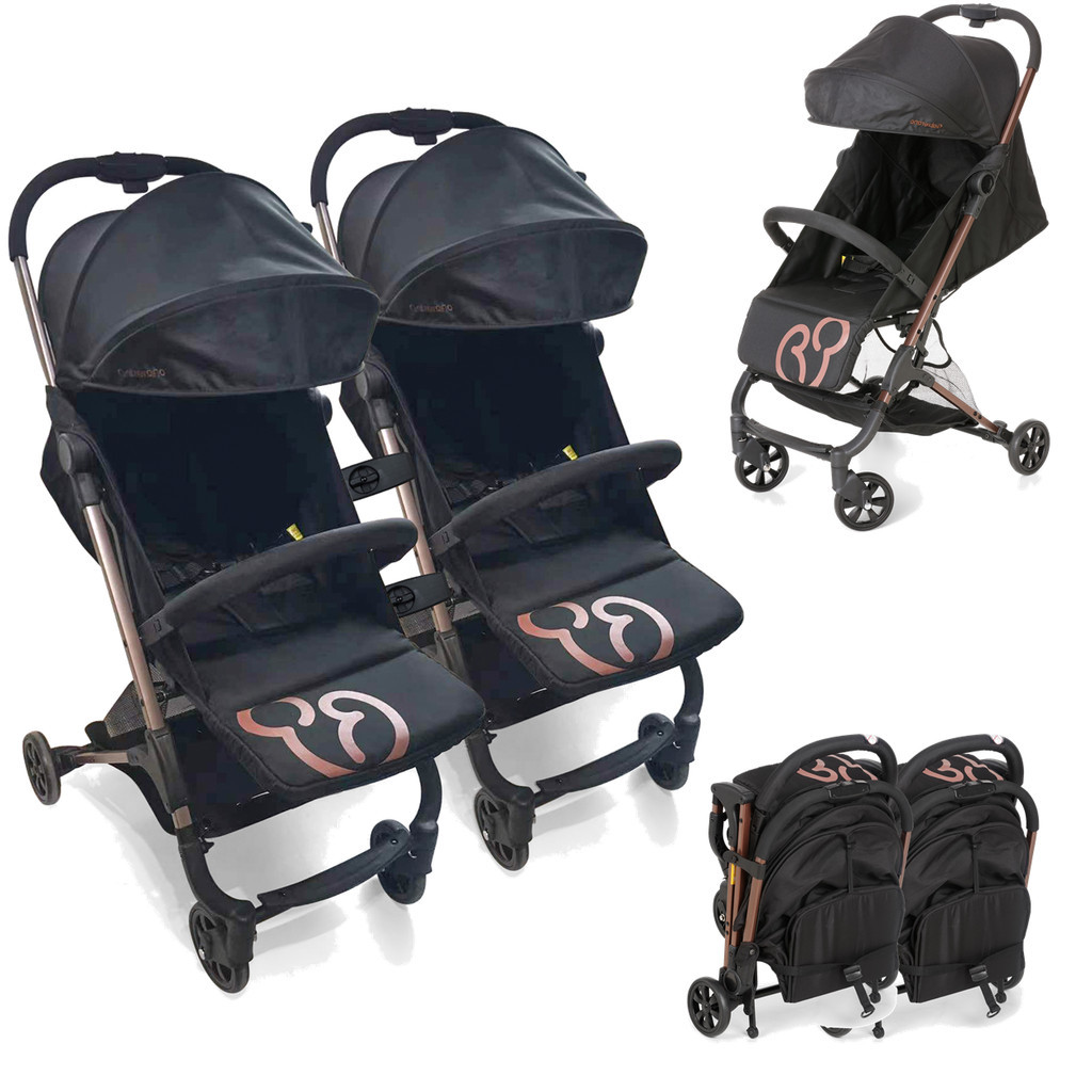 Carrinho para Gemeos Passeio Galzerano Duolee Duo Preto Cobre