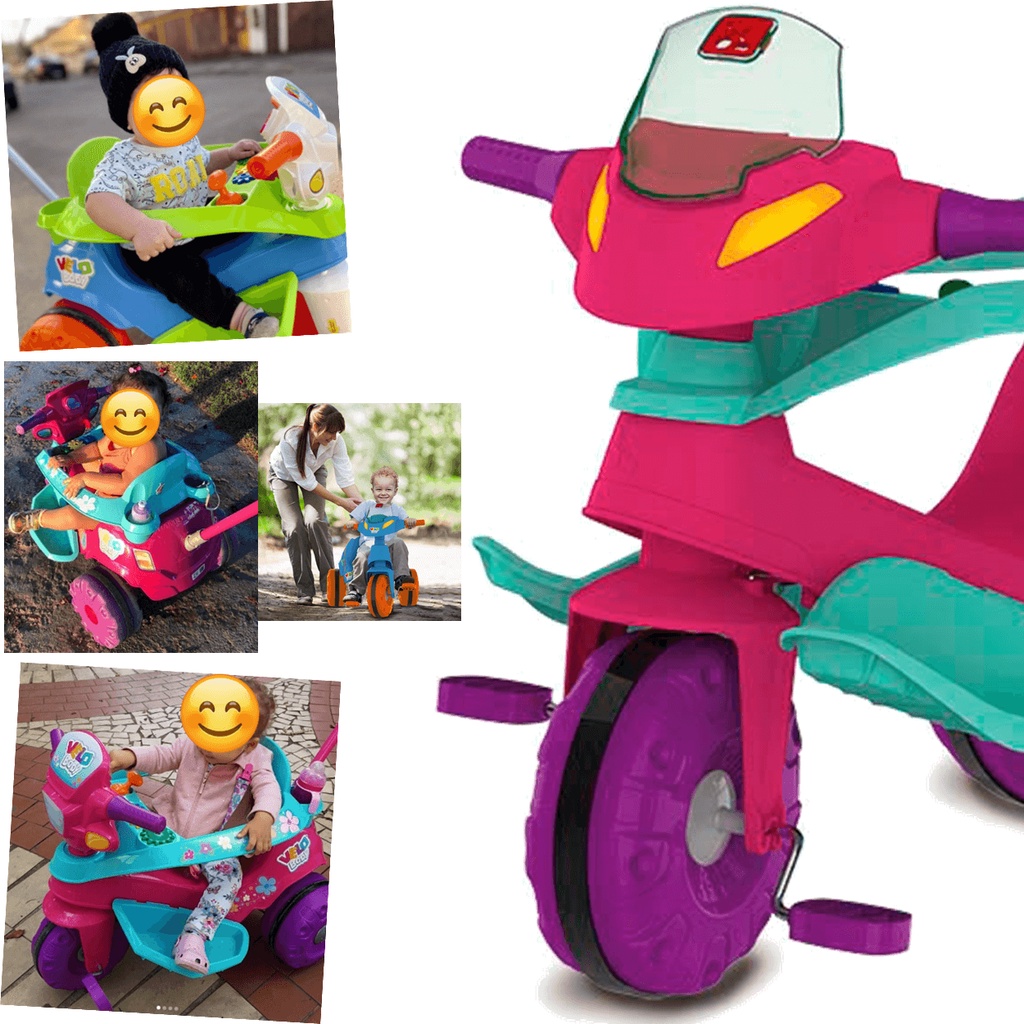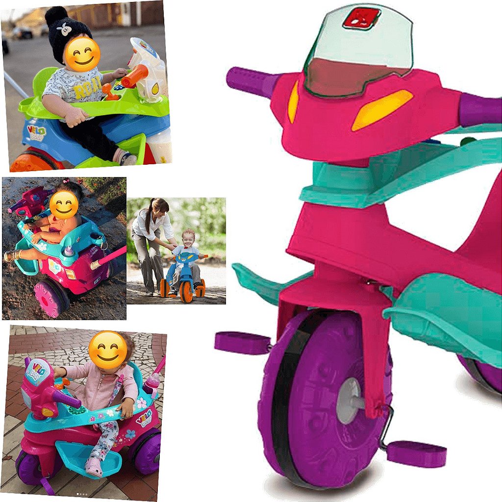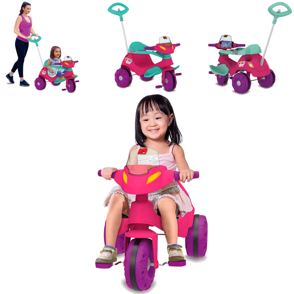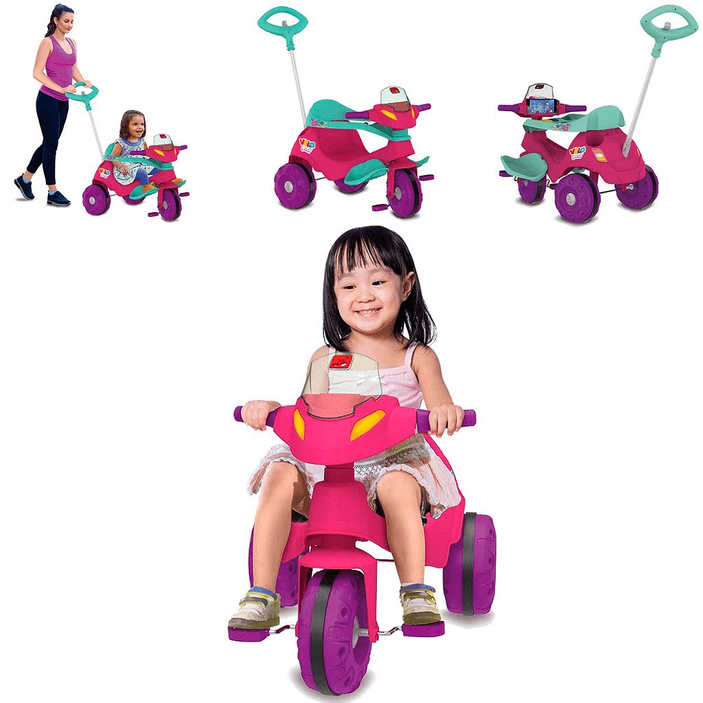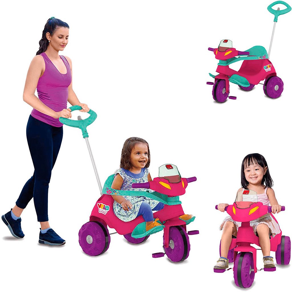 Triciclo Infantil Bandeirante Velobaby com Buzina Rosa