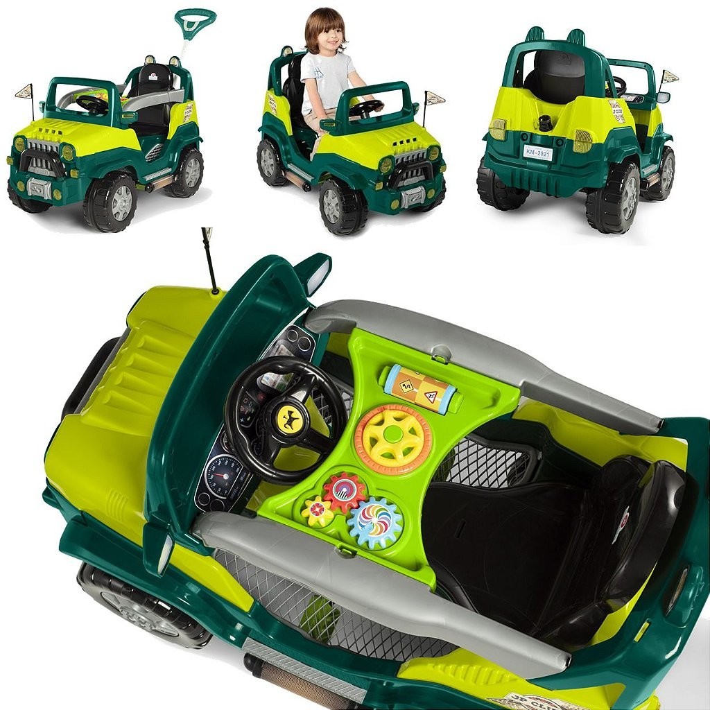 Carrinho Jipe com empurrador e pedal Diipi Calesita com aro de proteção infantil Calesita