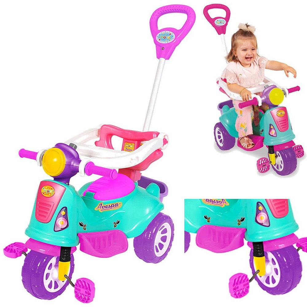 Carrinho de Passeio e Pedal Maral Moto Triciclo Avespa Pink
