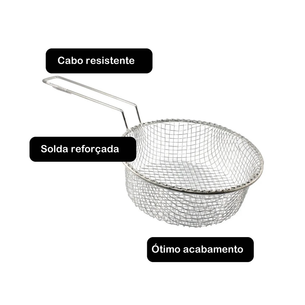 CESTO FRITURA P/ FRIGIDEIRA REDONDO PENEIRA FRITURAMA 23CM