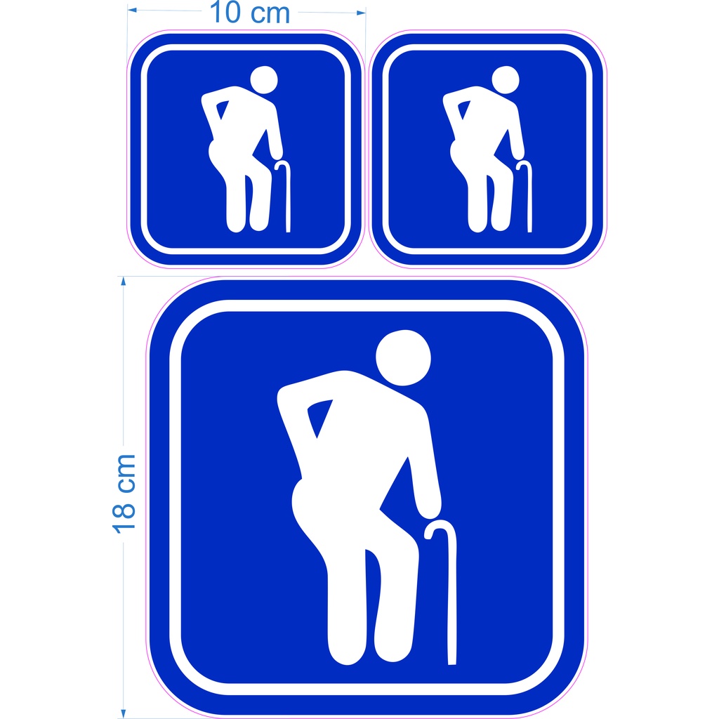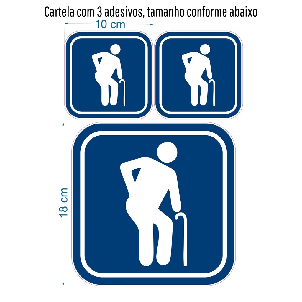 3 adesivos Idoso Kit carro aplicação externa azul e branco