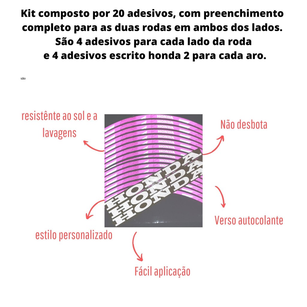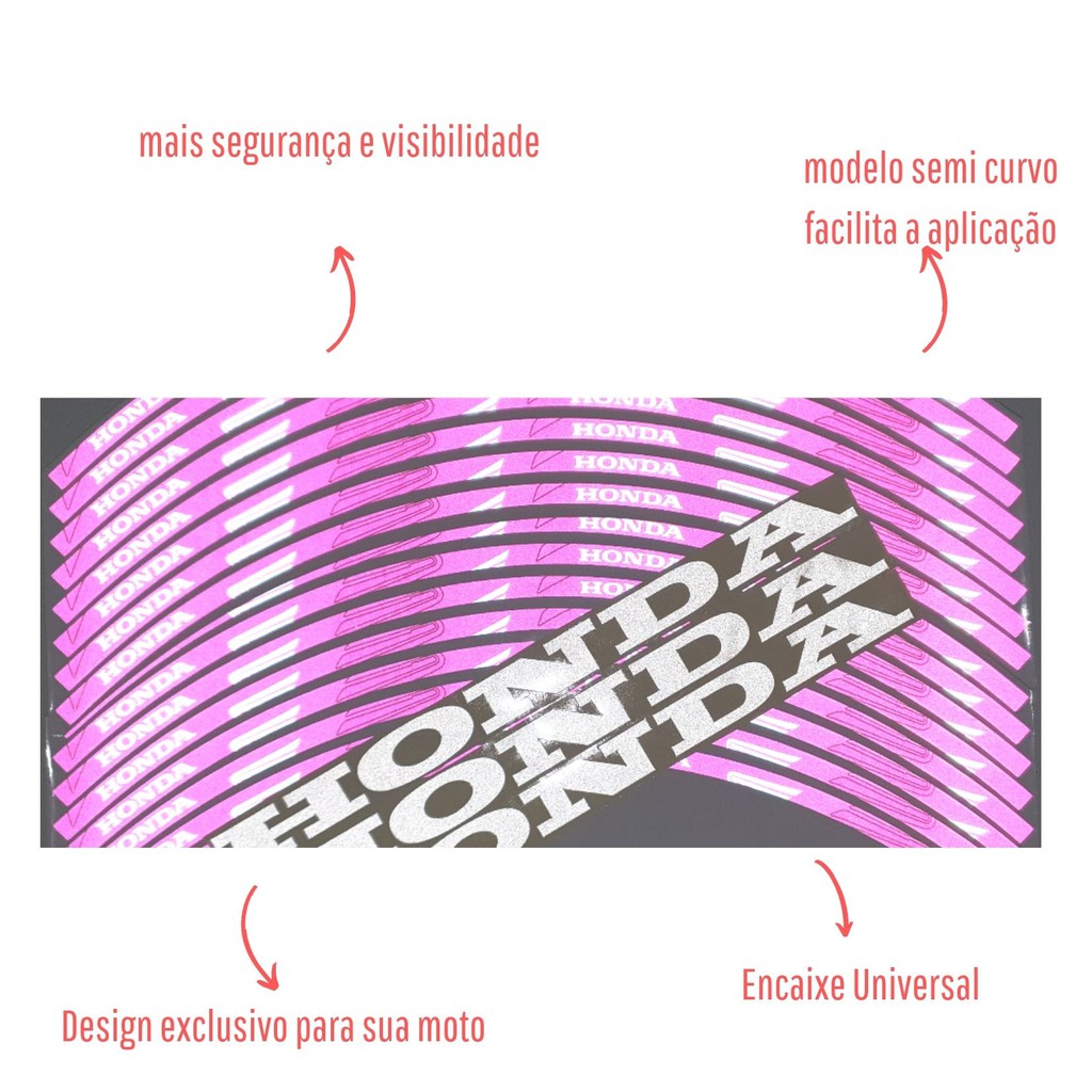 Adesivo Refletivo Rosa compativel motos Honda Para Roda Premium Universal
