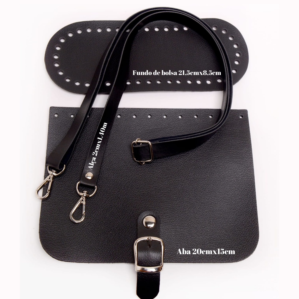 Kit Para Bolsa de Crochê Alça+ Fundo+ Aba em Couro Sintético