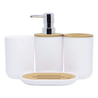 Kit De Banheiro Lavabo 4 Peças Plástico Conjunto Bambu Bamboo Porta Sabonete Liquido Luxo