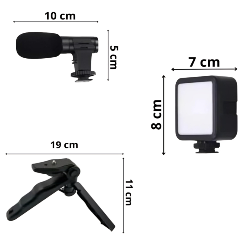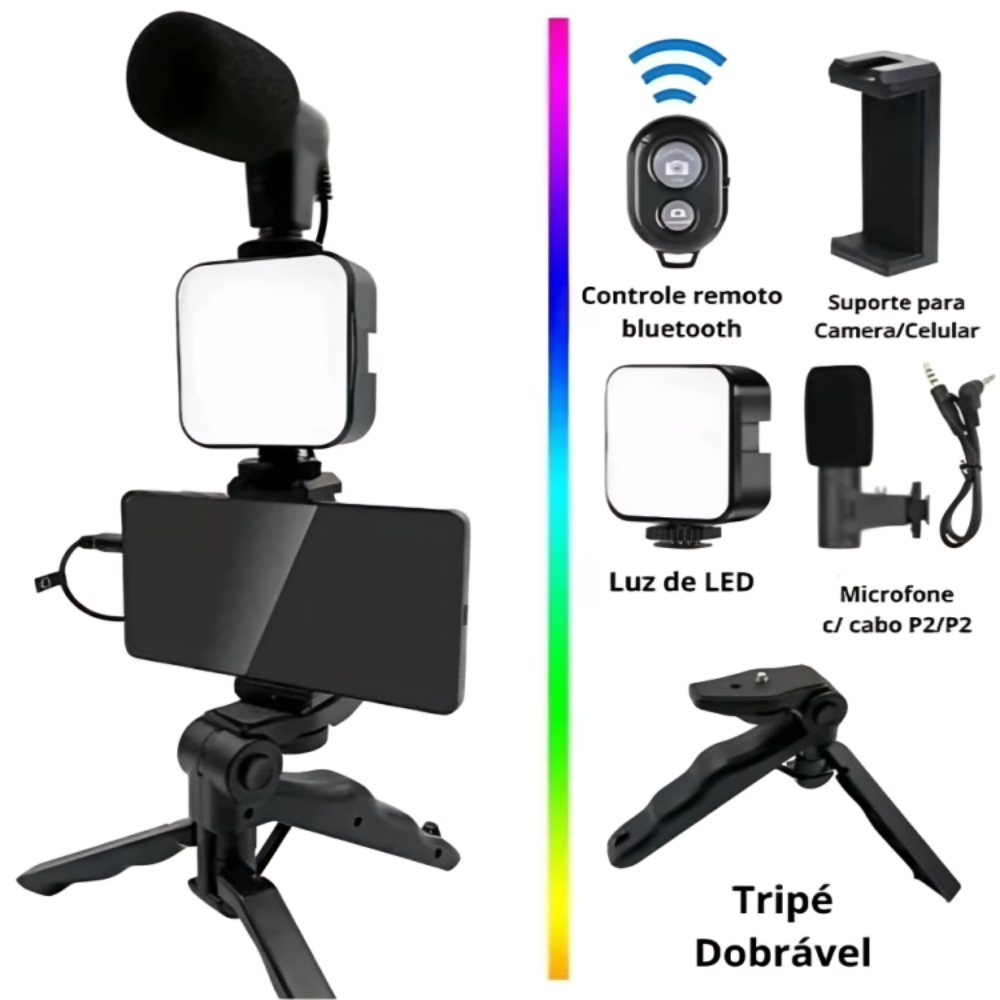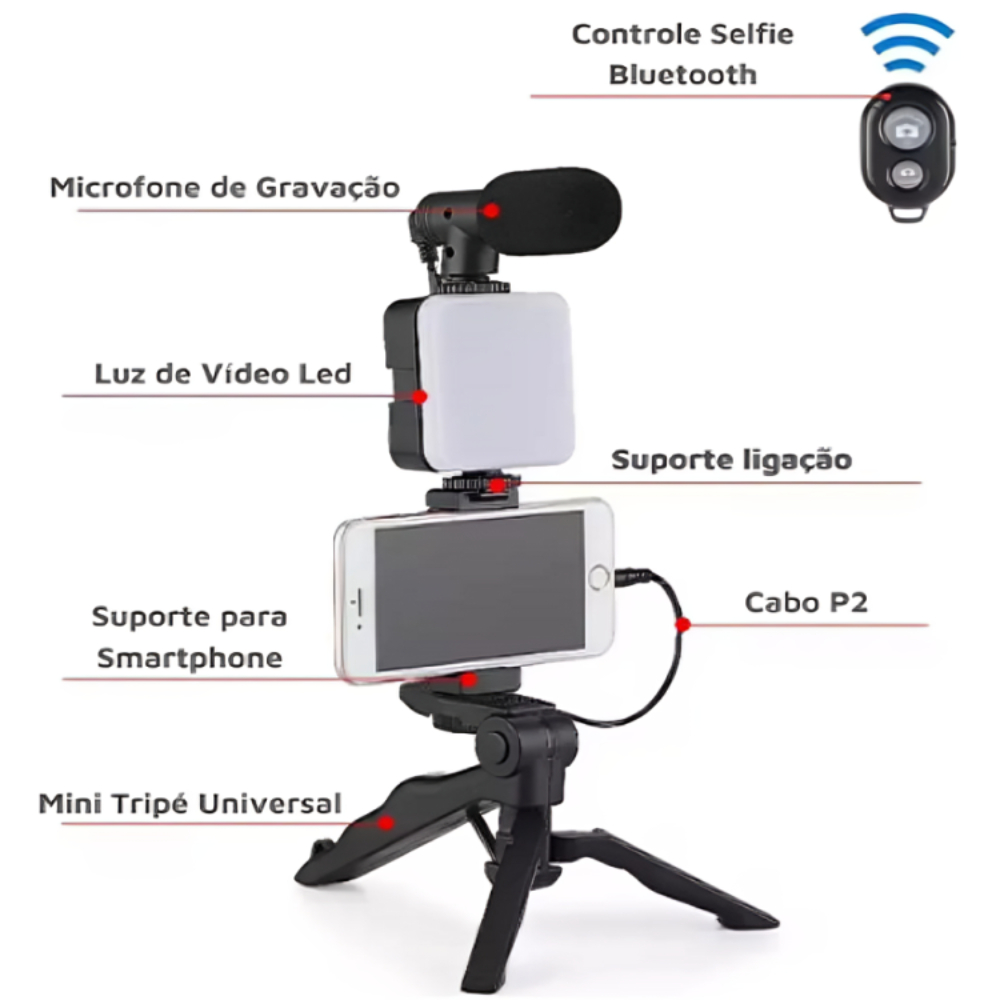 Tripé Estabilizador de Mão kit 5 em 1 gimbal Microfone Celular Gravação De Vídeo