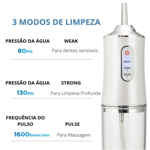 Irrigador Oral Limpeza Profunda Jato D àgua Tanque de 220ML Eletrico Dentes