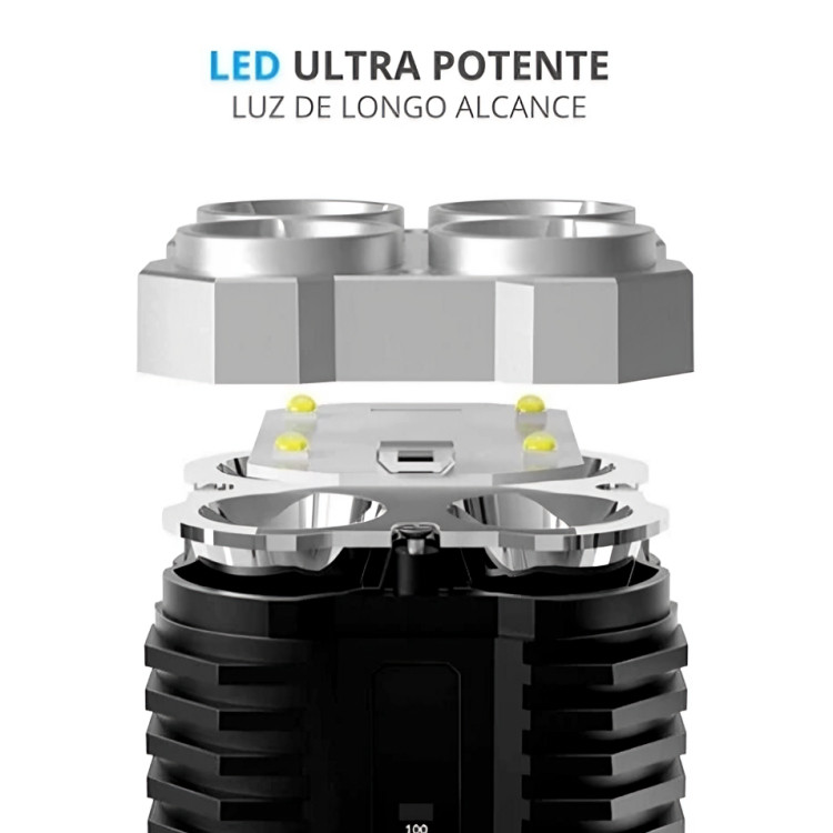 Lanterna MAIS forte do mundo Led Potente 4 Recarregável Usb Portátil Ultra Brilhante Envio Imediato