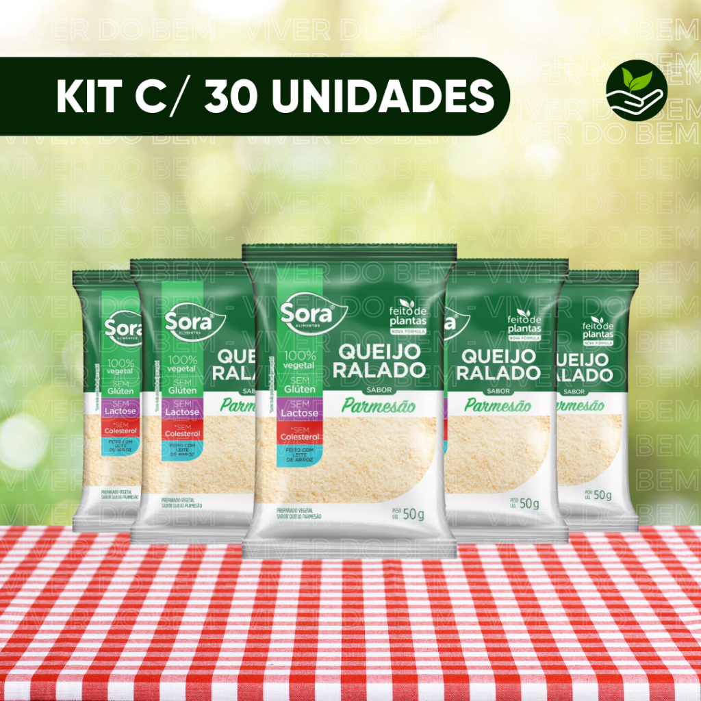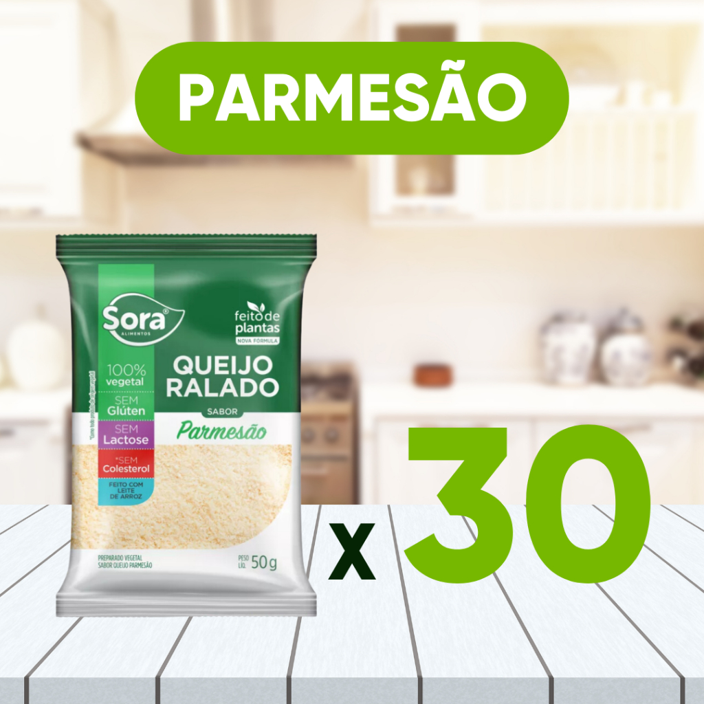 Sora Queijo Parmesão Ralado Vegetal Vegano Zero Lactose 30 Unidades de 50g