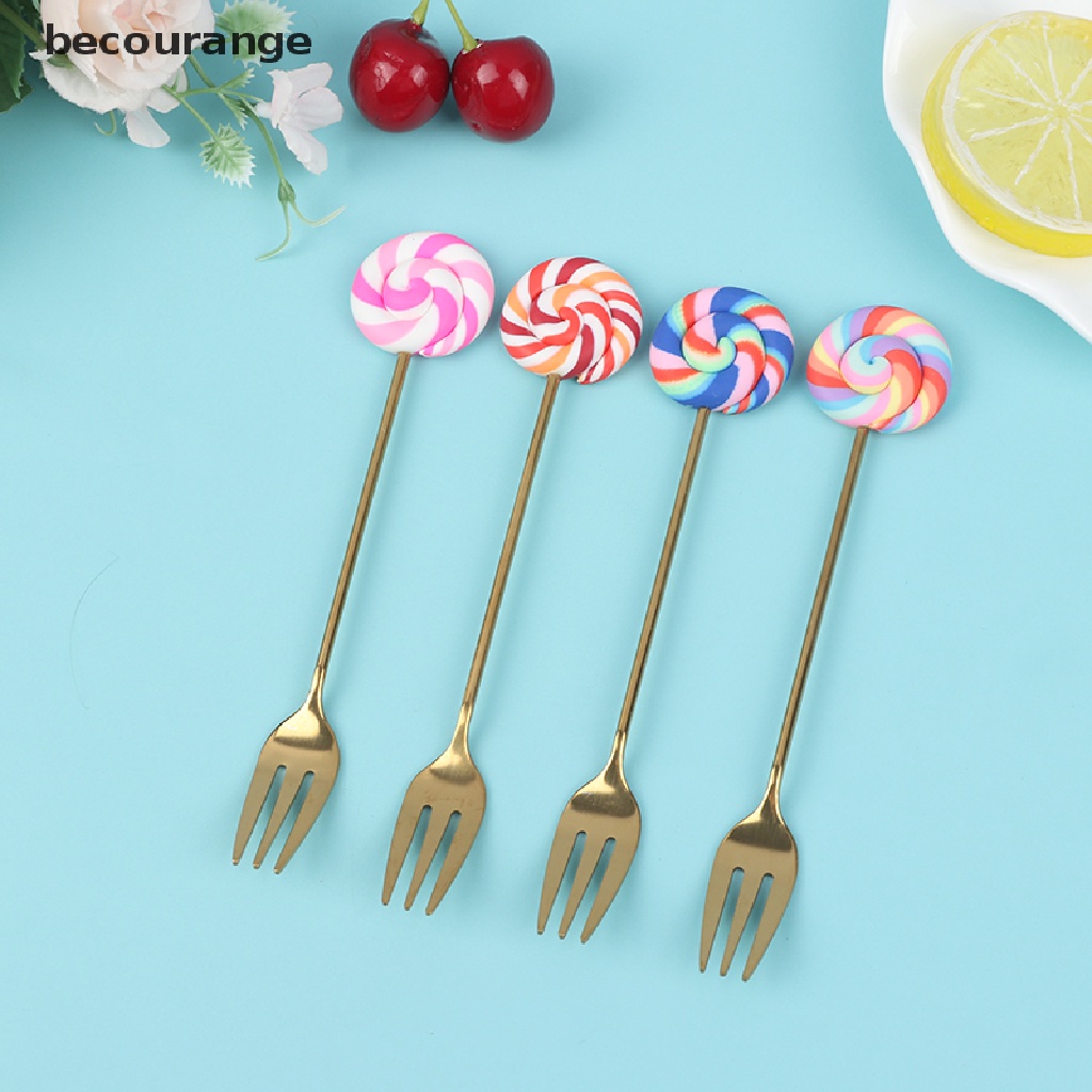 [becourange] 4pcs/Conjunto Colher De Doce Donut/Café De Garfo Agitação [BR]