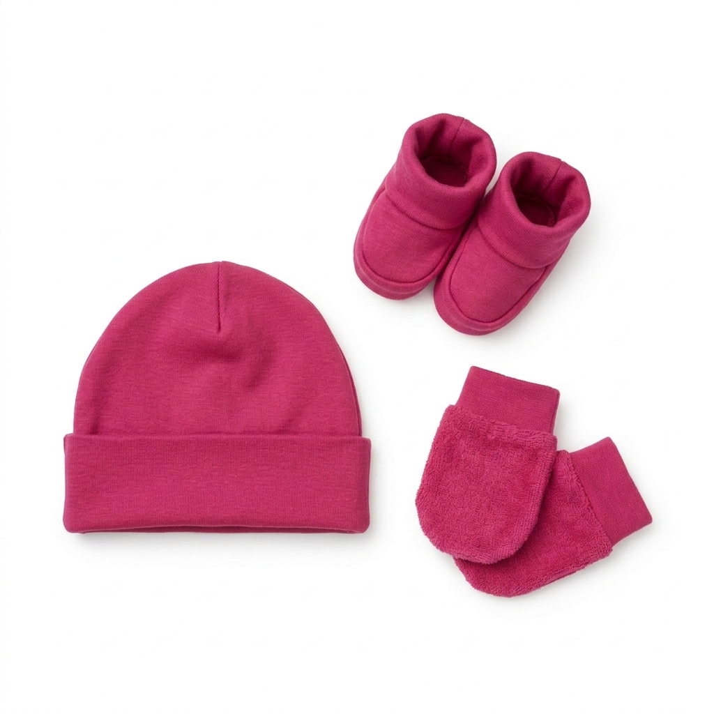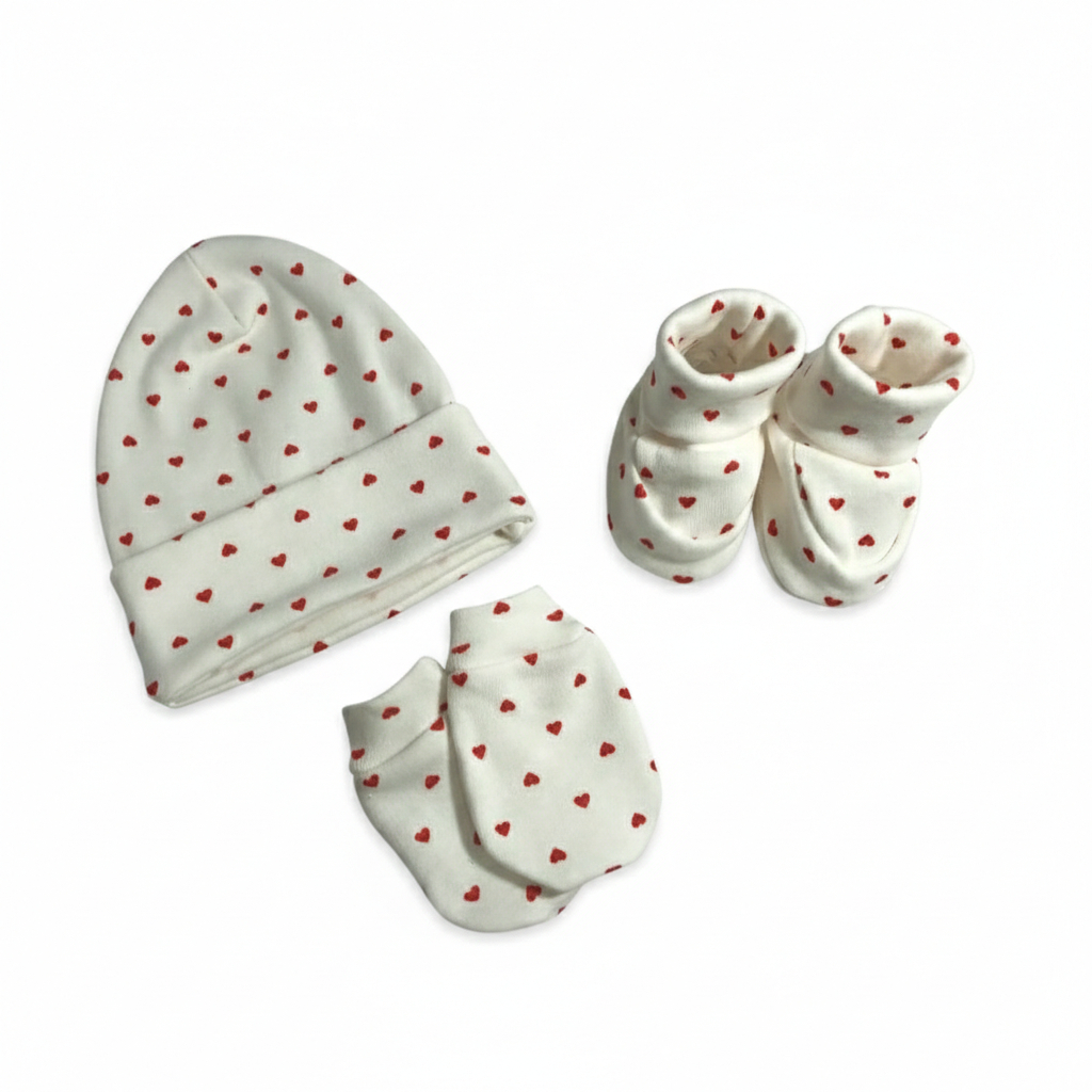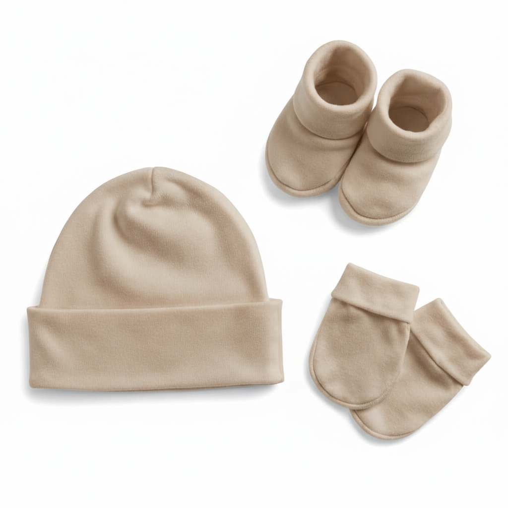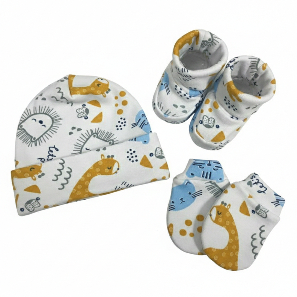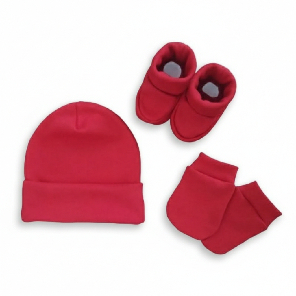 Kit 3 Peças Enxoval Bebê Recém Nascido Touca + Luvas + Pantufas Algodão Saída Maternidade