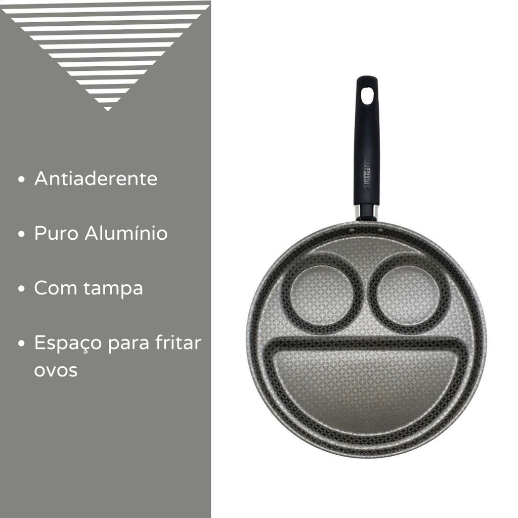 FRIGIDEIRA BREAKFAST COM TAMPA DE VIDRO ANTIADERENTE CINZA