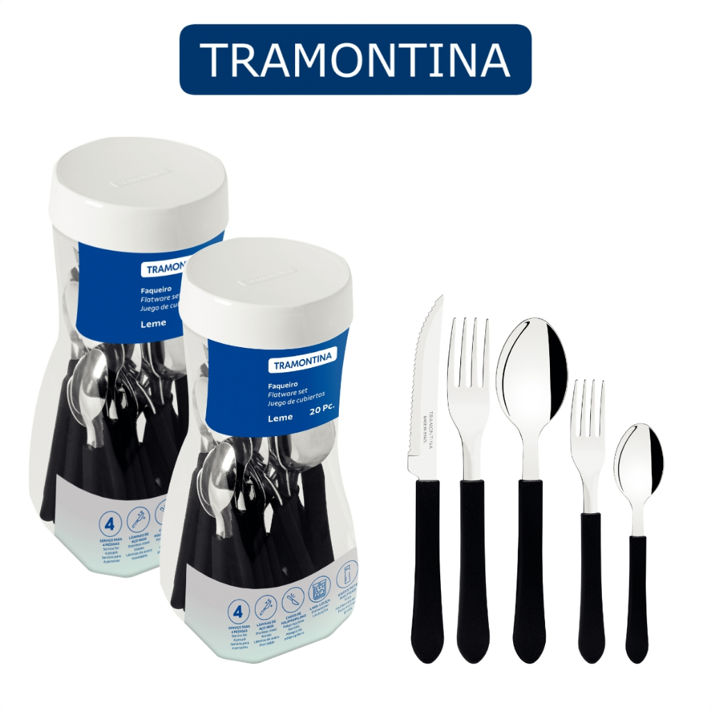Kit 2 Faqueiros Leme 20 Peças Cada em Aço Inox Talheres Várias Cores Tramontina