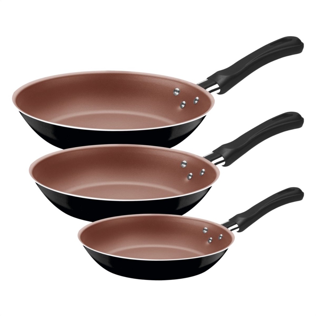 Jogo De Frigideiras Tramontina Em Aluminio Caribe Com Três 03 Peças Varias Cores